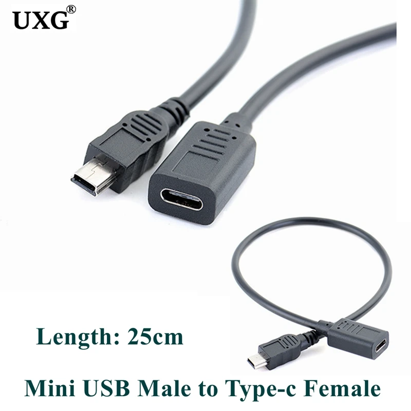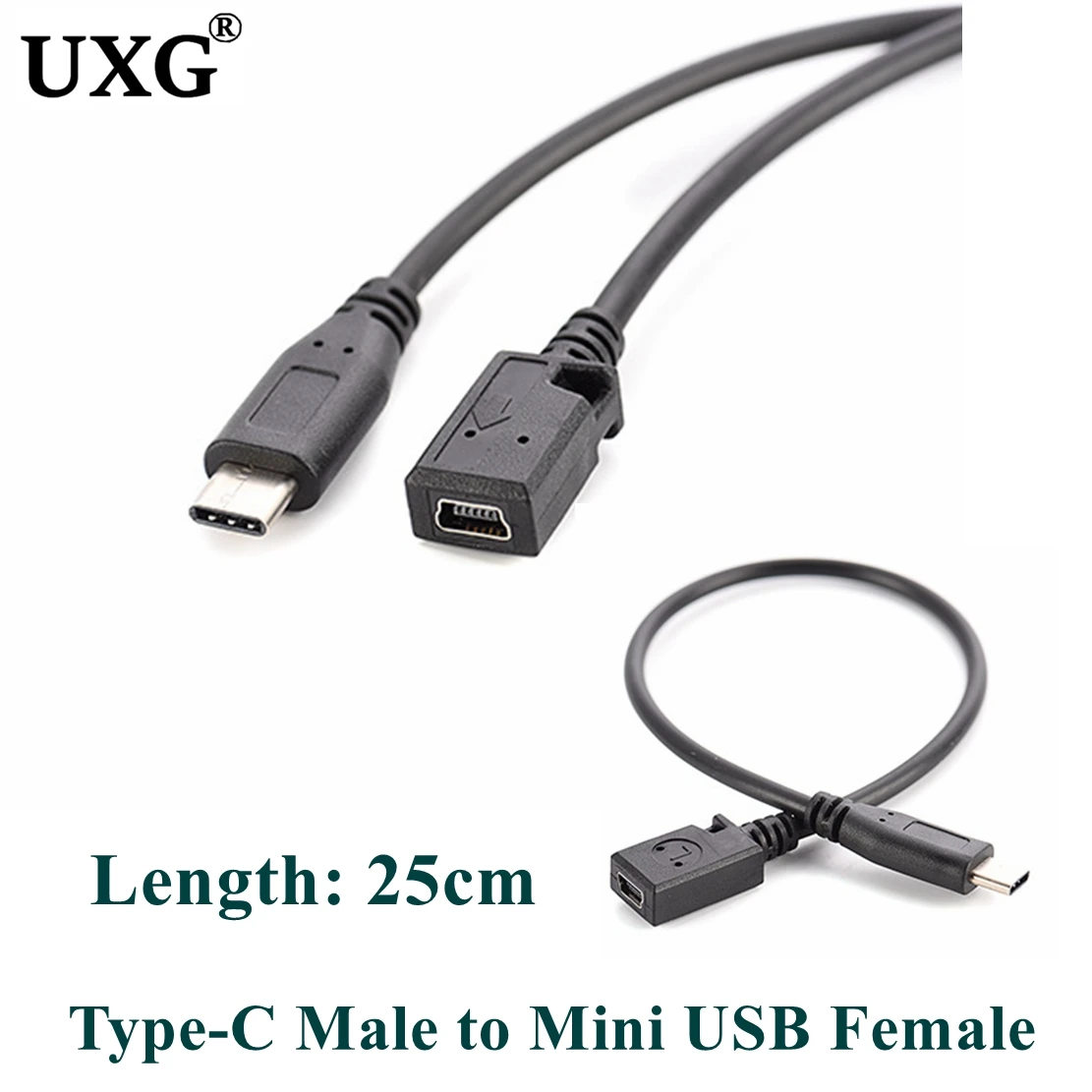 Comprar Adaptador USB C a Mini USB tipo C hembra a Mini Cable USB macho conector de 25cm para reproductores de MP3 GoPro cámara de salpicadero cámara Digital GPS