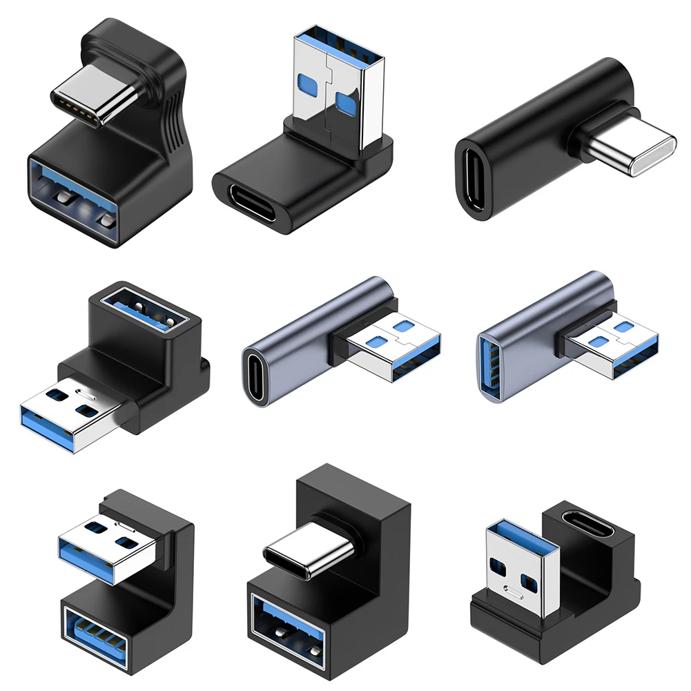 Comprar Adaptador USB C de codo de 180 grados para cubierta de vapor, Conector de extensión macho a hembra, convertidor USB C para ordenador y tableta