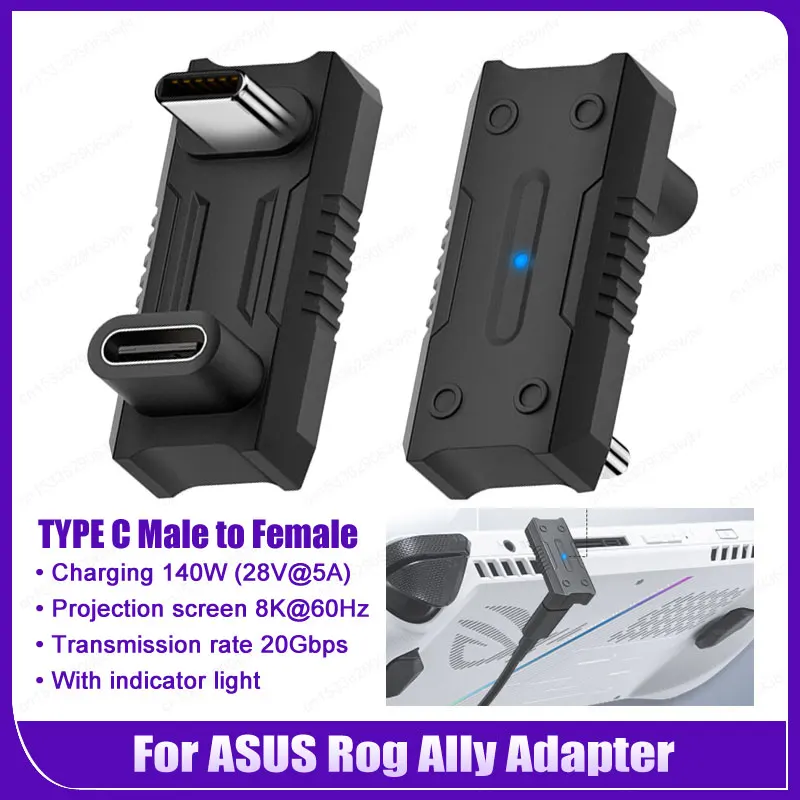 Comprar Adaptador USB-C para consola ASUS Rog Ally/NS Switch, adaptador macho y hembra tipo C PD140W, cubierta en forma de U de 180 grados, 20Gbps