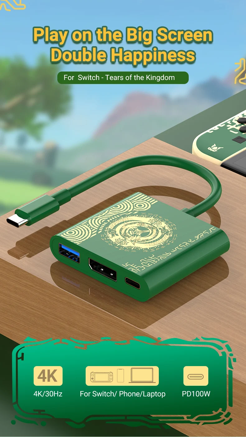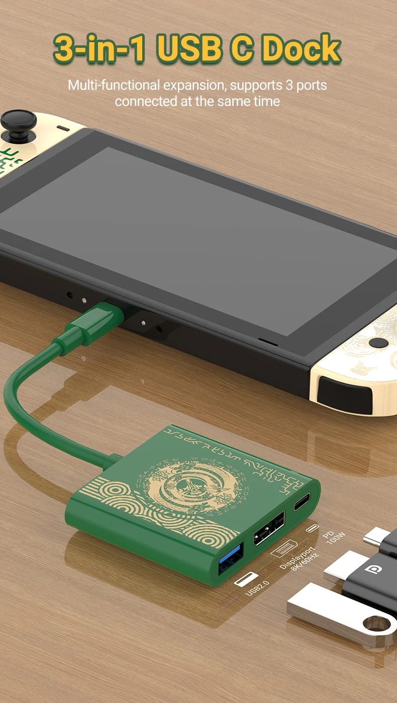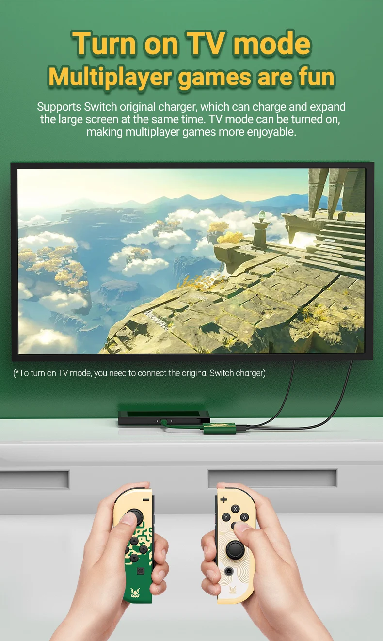 2.For Switch,the resolution is 1080P. Recommend connect the original charger and Displayport cable when using