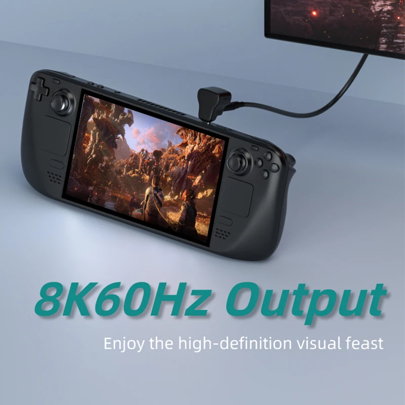 【Vídeo de alta definición】El adaptador de vídeo USB C a C macho a hembra admite salidas de 8K a 60 Hz, puede disfrutar de una resolución de vídeo ultra HD.Adecuado para Steam deck/ROG Ally/Switch, conéctese a la base, obtendrá una mejor calidad de imagen y experiencia de juego, y disfrutará del mundo del juego de alta calidad.(Debe usarse con un cable de función completa USB C a C compatible con 8K@60Hz para lograr la función de salida de video de 8K@60Hz)