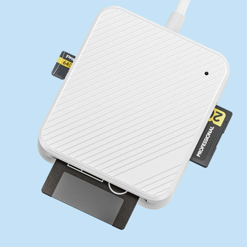 El lector de tarjetas USB tipo C le permite acceder y transferir fácilmente archivos desde las tarjetas de memoria de su cámara a sus dispositivos, ahorrándole tiempo y esfuerzo.