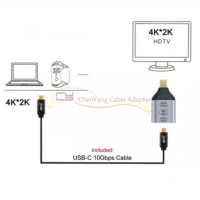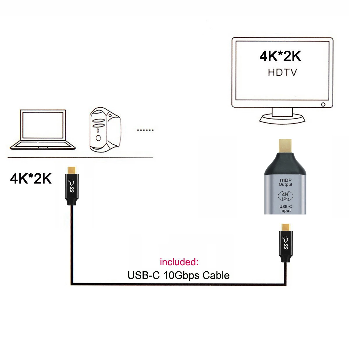 Cable de 10Gbps de 100W, fuente hembra tipo C a Mini Displayport DP Sink, adaptador HDTV 4K 60Hz 1080p para tableta, teléfono y portátil