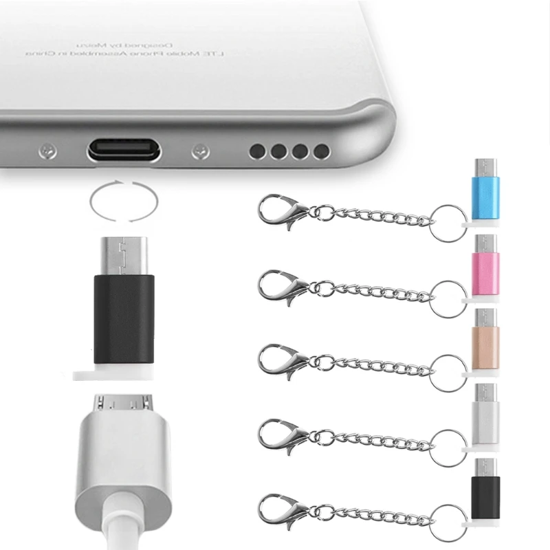 Comprar Adaptador USB-C USB 3,1 tipo C macho a Micro USB hembra, convertidor con llavero antipérdida para teléfono Android, PC, LG G6/Oneplus 3 T/S