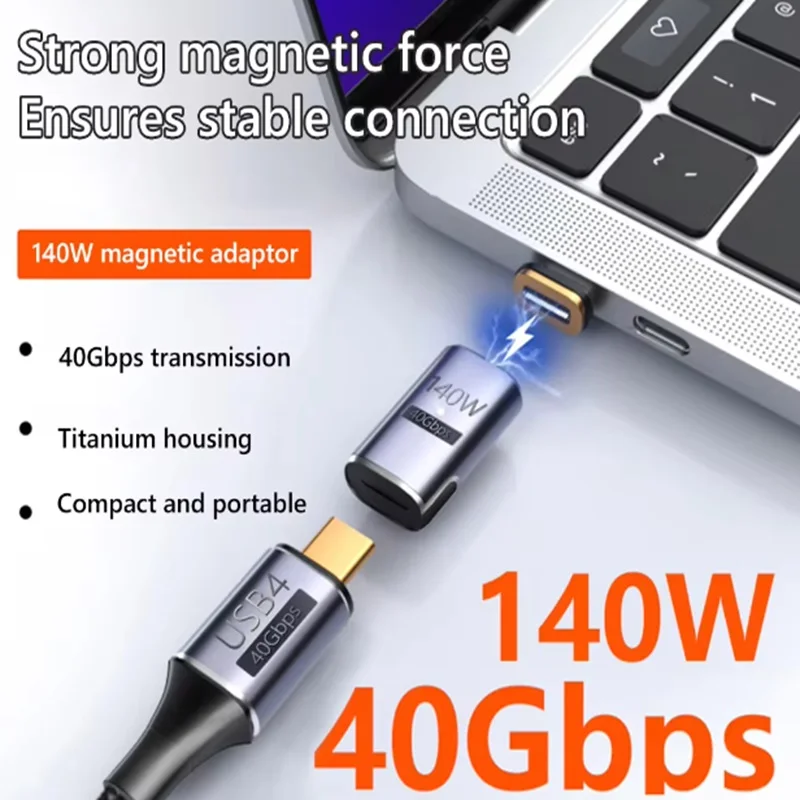 Imán magnético USB 4.0 TYPE-C Aluminio 8k@60hz 4K 1080P Pd 140w 20V-5V 5A Carga rápida Transferencia de datos 40gbps Adaptador de tableta Conector de cable de audio y vídeo para Thunderbolt 3/4 proyección TV HDTV LAPTOP Teléfono