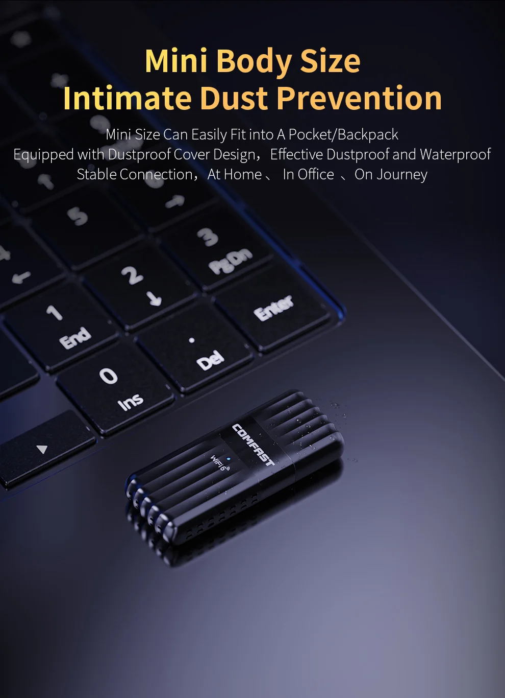 Es compatible con la tecnología WiFi6 y Bluetooth 5,3. Banda dual de 2,4G y 5,8 GHz, fuerte capacidad antiinterferencia. Bluetooth 5,3 hace que la transmisión sea más eficiente. Forma Mini, más conveniente de usar y transportar. Se puede utilizar como tarjeta de red o simular un AP para construir fácilmente una WLAN.