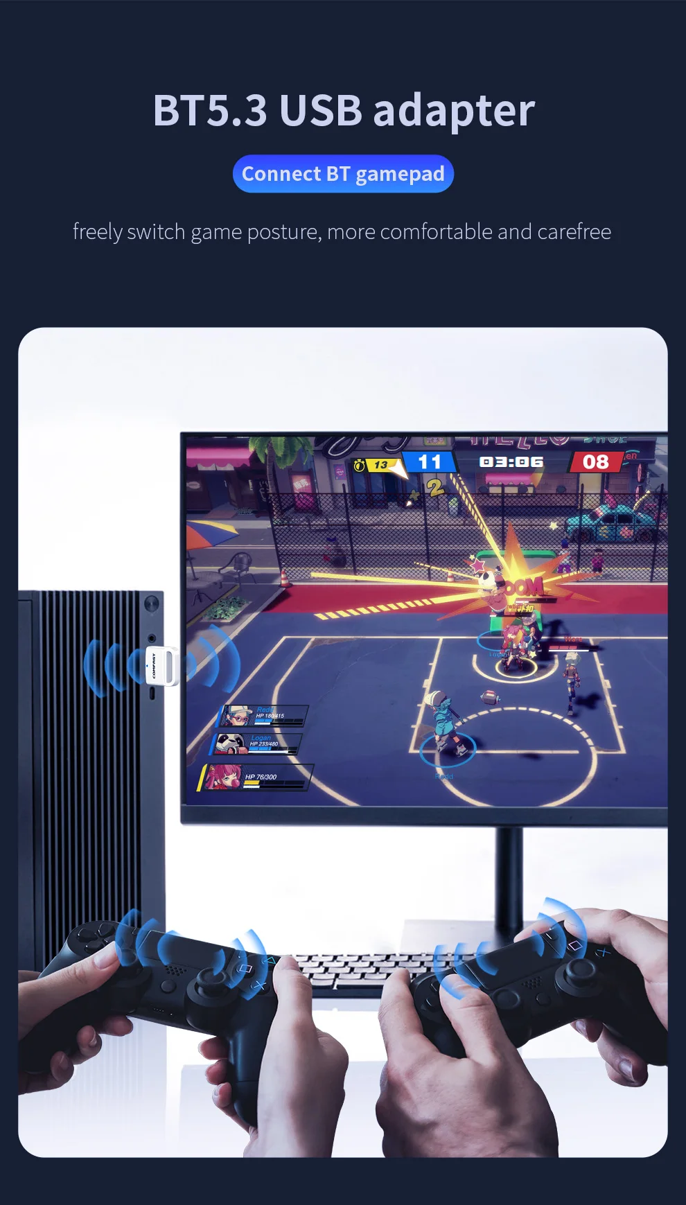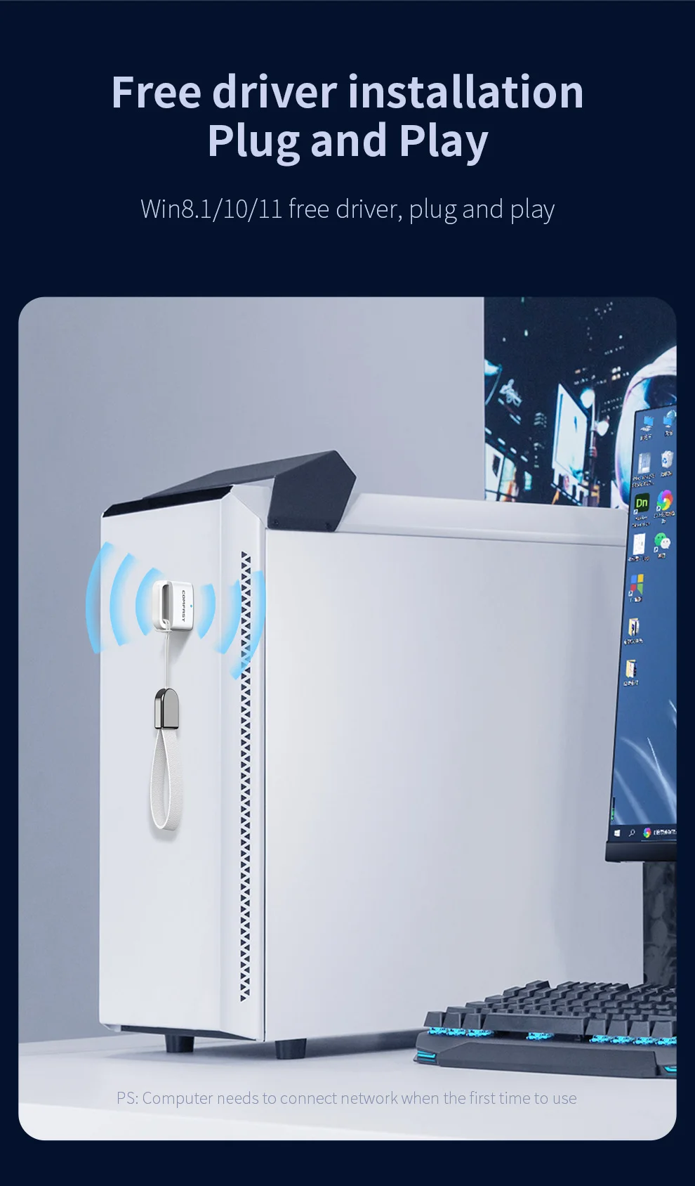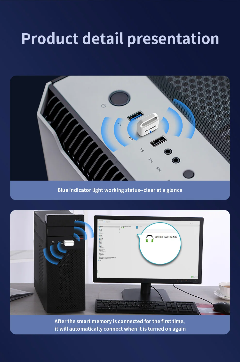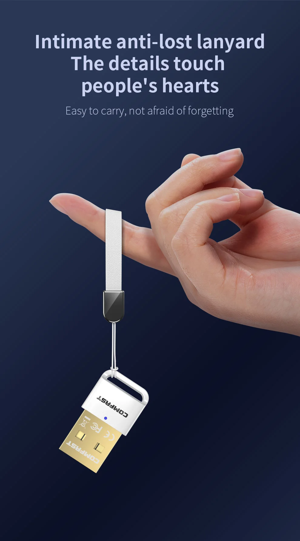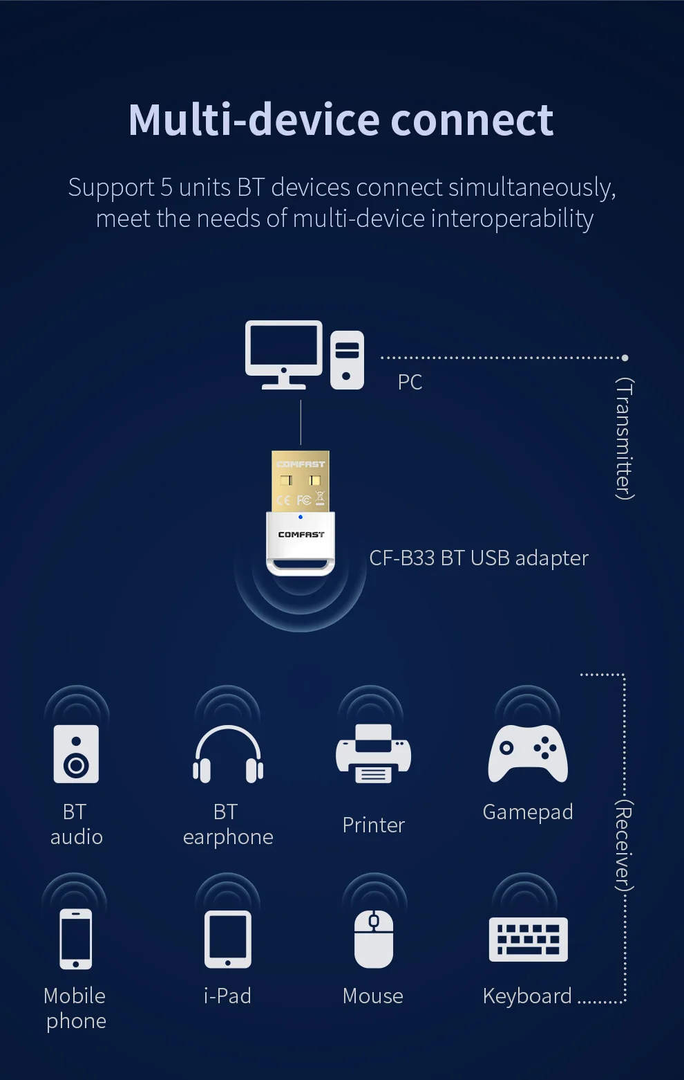 Adaptador USB Comfast, Dongle Bluetooth de unidad libre para dispositivos BT, receptor de transferencia de datos de música para escritorio/portátil BT5.2/5,1/5,0/4,2