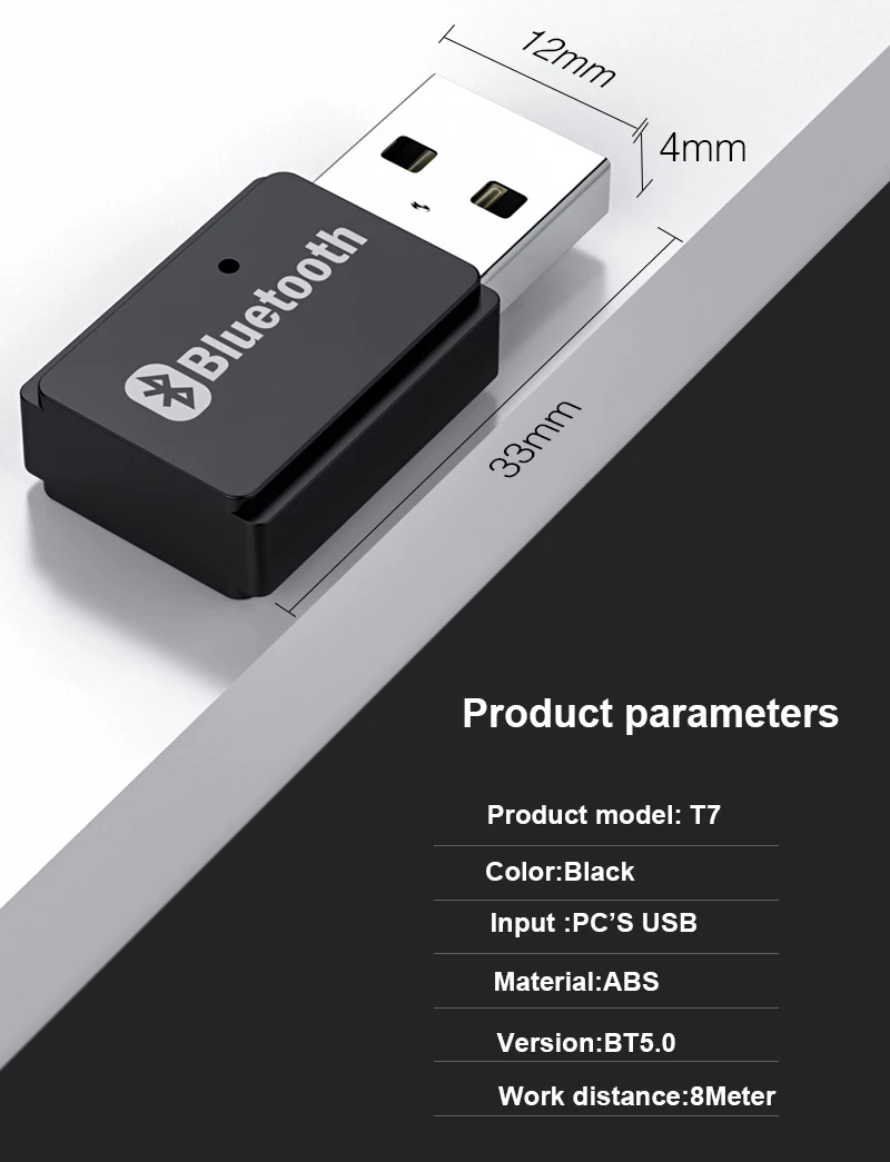 Adaptador USB compatible con Bluetooth 5,0 Adaptador 3mbps Dongle inalámbrico Adaptador transmisor receptor de sonido de música