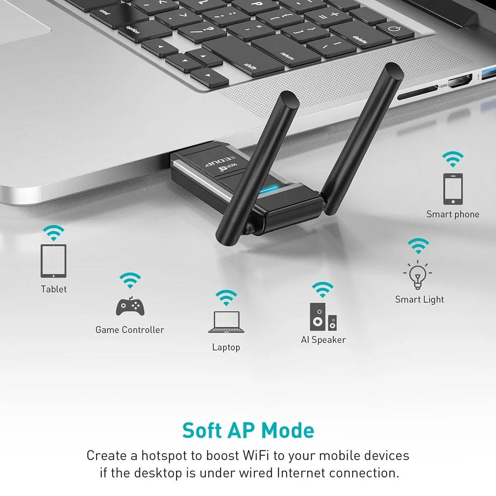 Comprar Adaptador USB EDUP WiFi6 de doble banda AX1800 MU-MIMO adaptador WiFi AP suave Dongle WiFi inalámbrico tarjeta de red 802.11AX para Windows10/11