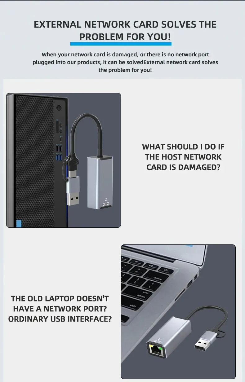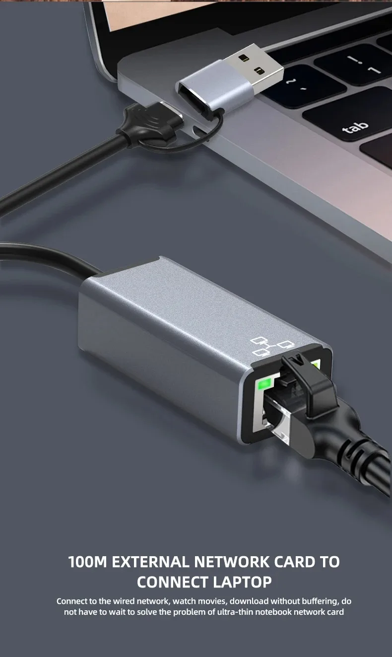 Tarjeta de red externa USB C, utilizada para teléfono móvil/tableta/tableta pen para conectar Ethernet para navegar y jugar. Admite ajuste automático de velocidad de red de 10/100 Mbps. Experiencia de red de baja latencia, el dispositivo es más estable y fluido para navegar por Internet, conectado directamente al cable de red, despídase del WIFI inestable, pequeño y portátil, fácil de usar y duradero. Admite conexión en caliente, admite TCP/IP, NetBEUI, protocolo de transmisión ipx/spx.
