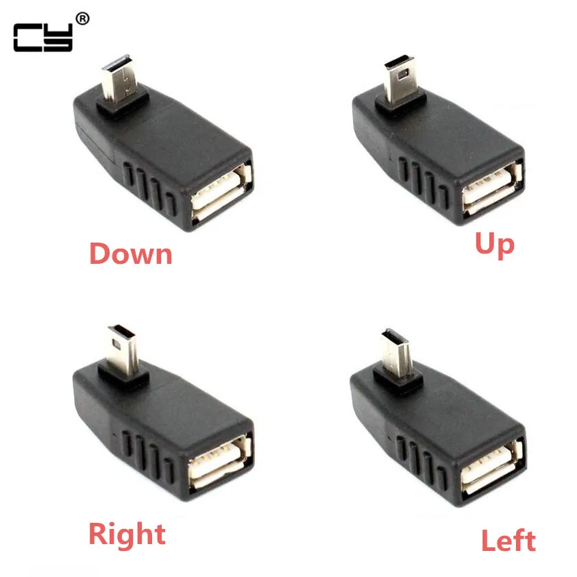Comprar Adaptador USB hembra a Mini USB macho de 90 grados hacia abajo, derecha, izquierda, arriba y abajo, OTG, para tableta auxiliar de coche, adaptador negro derecho izquierdo hacia abajo