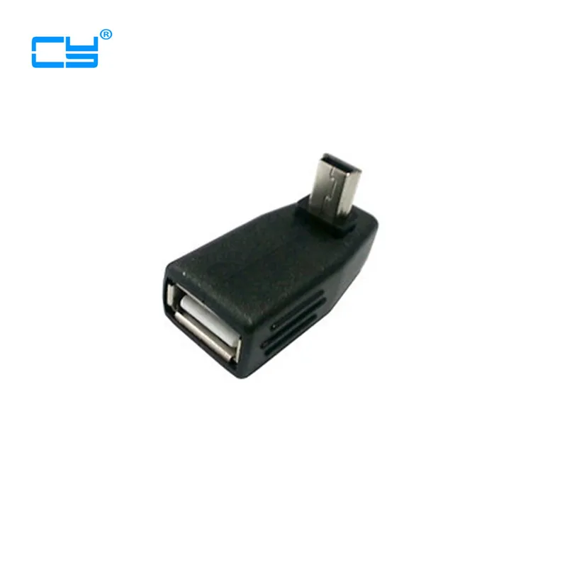 90 grados Anlgled OTG USB hembra a Mini adaptador macho de 5 pines para tableta AUX de coche