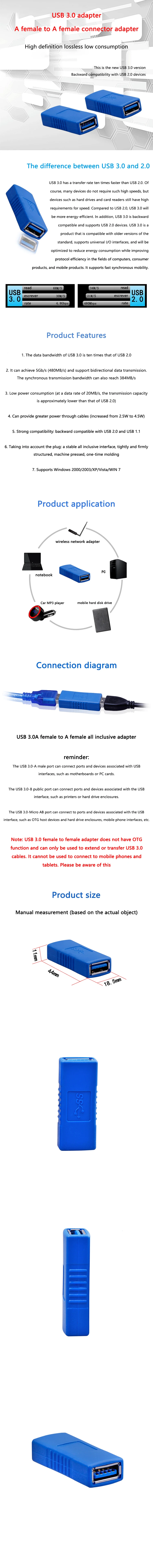 Comprar Adaptador USB A hembra a hembra, extensión de convertidor, conector USB 3,0 AF a AF, enchufes de conector
