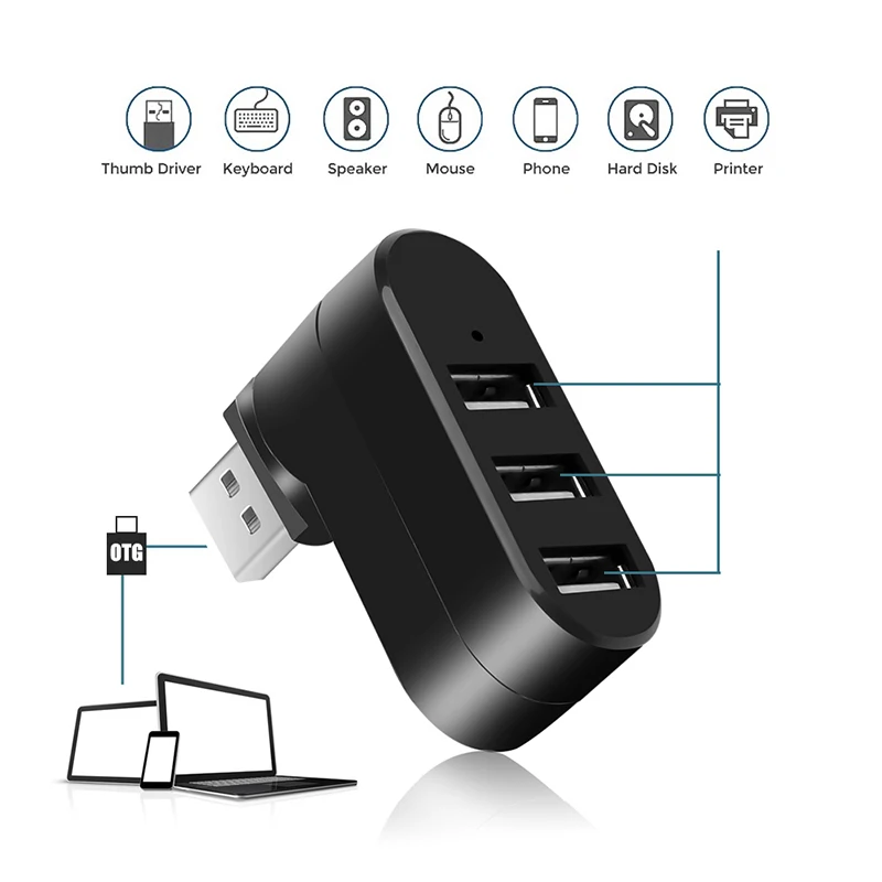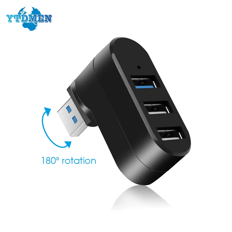 Comprar Adaptador USB Hub 3,0 2,0 giratorio de alta velocidad, lector de disco U, 3 puertos, divisor de transferencia de datos, estación de acoplamiento para ordenador, PC y portátil
