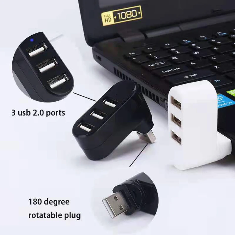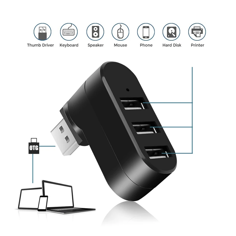 Adaptador USB HUB 3,0 2,0, rotación de 180 °, divisor de 3 puertos USB de alta velocidad para ordenador, portátil, teclado, ratón, accesorios de teléfono móvil