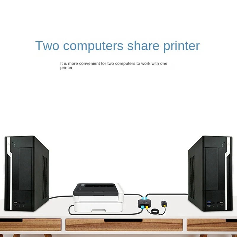1.Dos computadoras comparten una impresora con un controlador de escritorio, plug and play, simple y conveniente