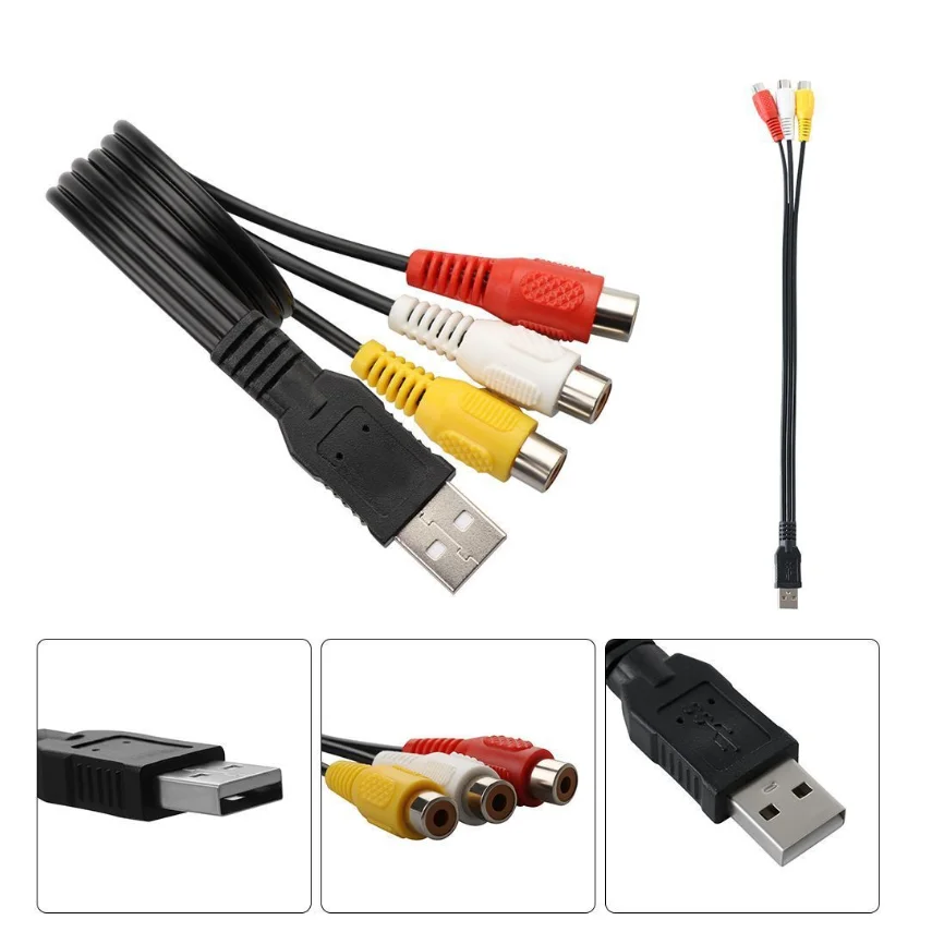 Comprar Adaptador USB macho de 1 A 3 piezas RCA hembra, convertidor de Audio y vídeo, Cable AV A/V, Cable USB A RCA para HDTV, TV y televisión