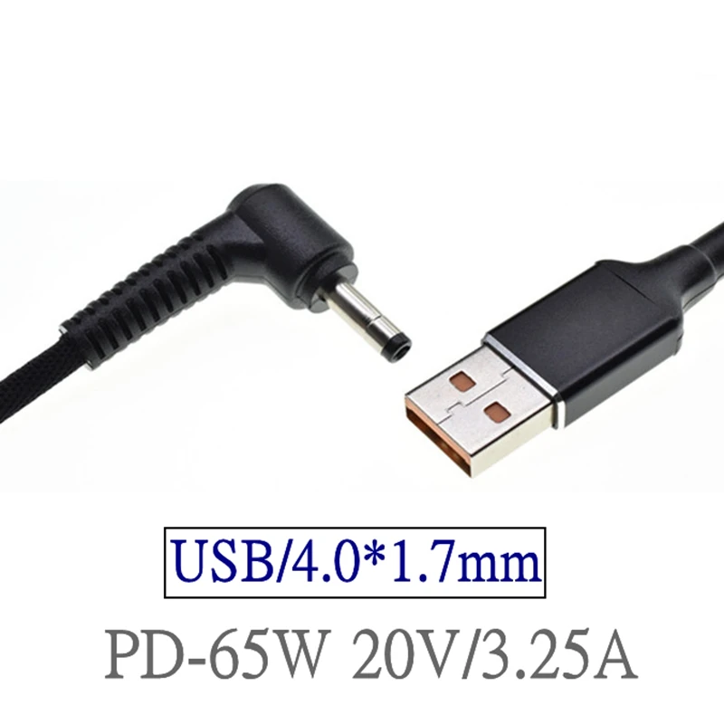 Comprar Adaptador USB macho a DC de 65W, 4,0x1,7, alimentación macho de 15V, 20V, 3.25A, Cable conector de cargador rápido de 180CM para Lenovo, Asus, BenQ, PD, Notebook