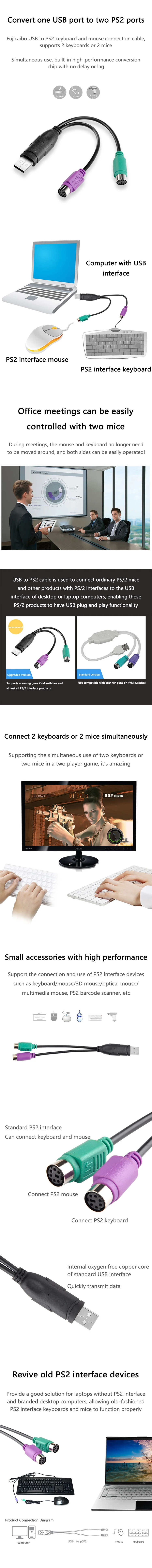 Ámbito de aplicación: convierta un USB en dos dispositivos PS/2, que pueden conectar simultáneamente un teclado y un mouse PS/2, y se pueden usar en BIOS.