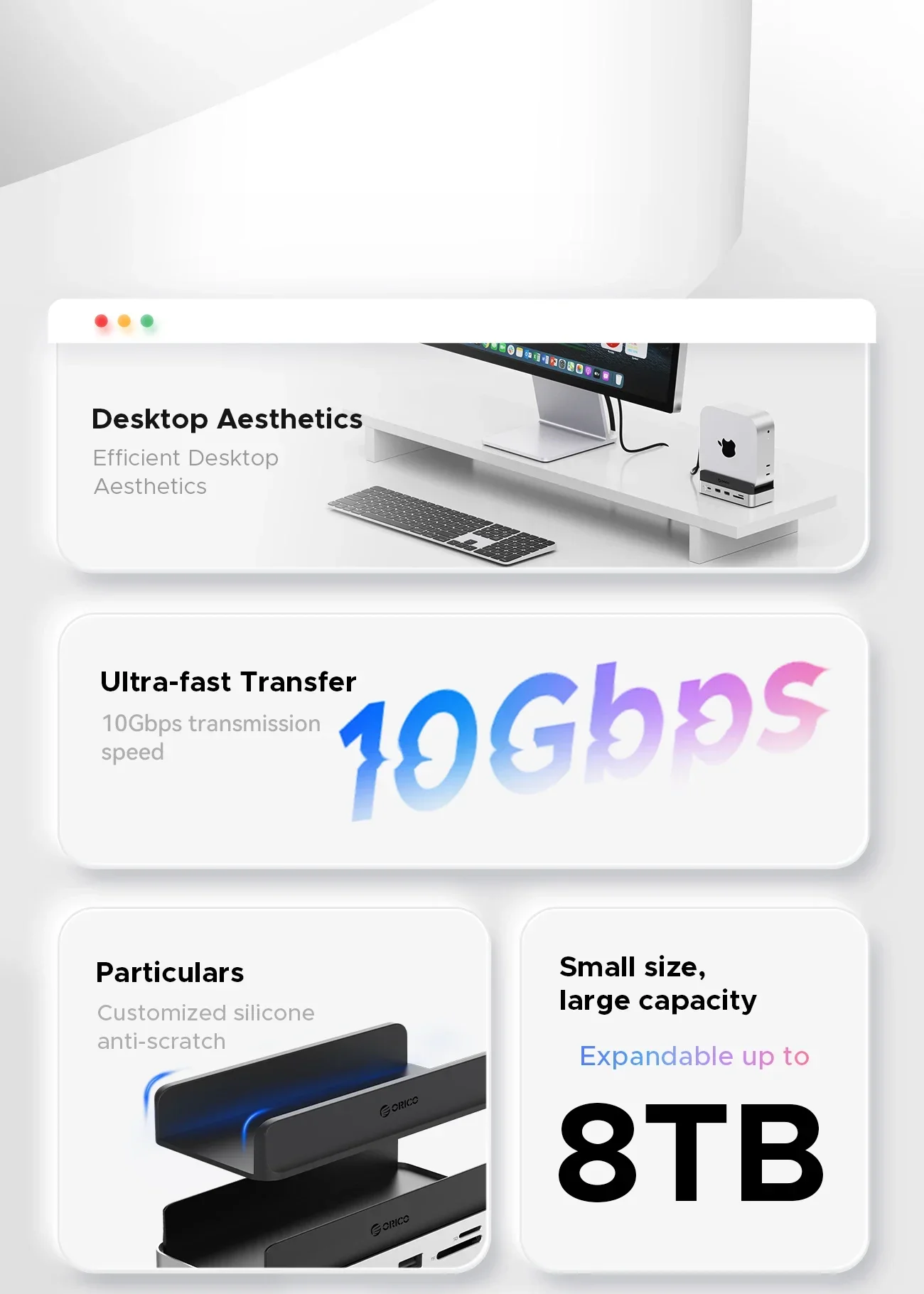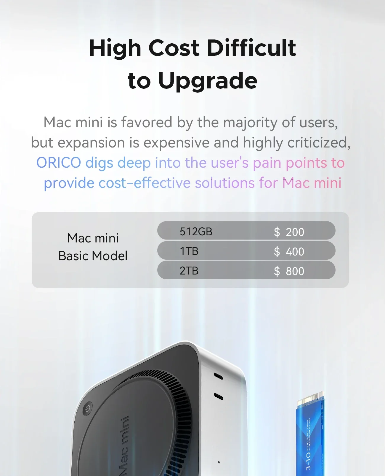 Comprar Adaptador USB ORICO, base de expansión de almacenamiento MiniDock para Mac Mini M4 y M4 Pro, base USB3.2 tipo C con SSD 512G 1T 2T 4T M.2