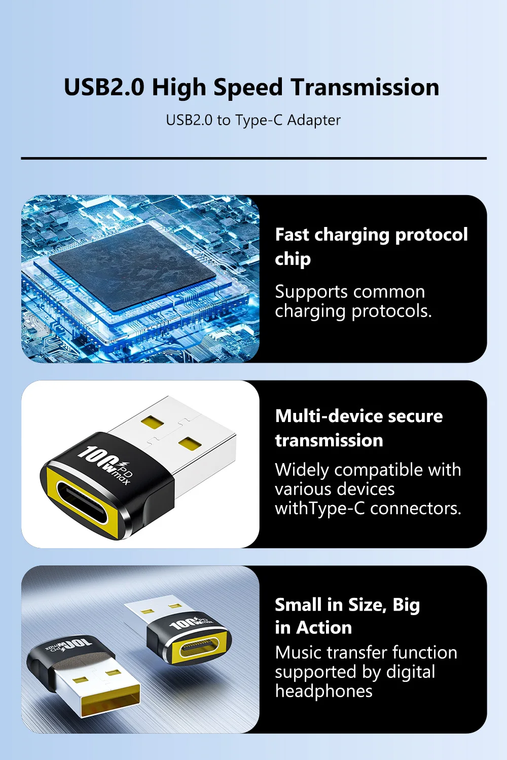 Adaptador USB OTG a tipo C PD100W, adaptador hembra a USB macho, carga rápida, transferencia de datos para Macbook, ordenador portátil, PC, Xiaomi, Samsung