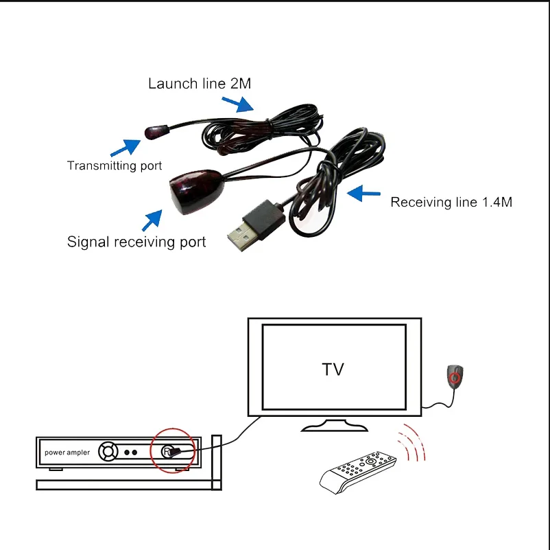 Recordatorio: el decodificador (u otro equipo que necesite control remoto) debe colocarse en un lugar donde su control remoto no pueda controlarse directamente de forma remota. De lo contrario, la señal del control remoto y la señal del control remoto después del reenvío se enviarán al decodificador al mismo tiempo. ¡Las señales no están sincronizadas e interferirán entre sí y harán que no funcionen correctamente!