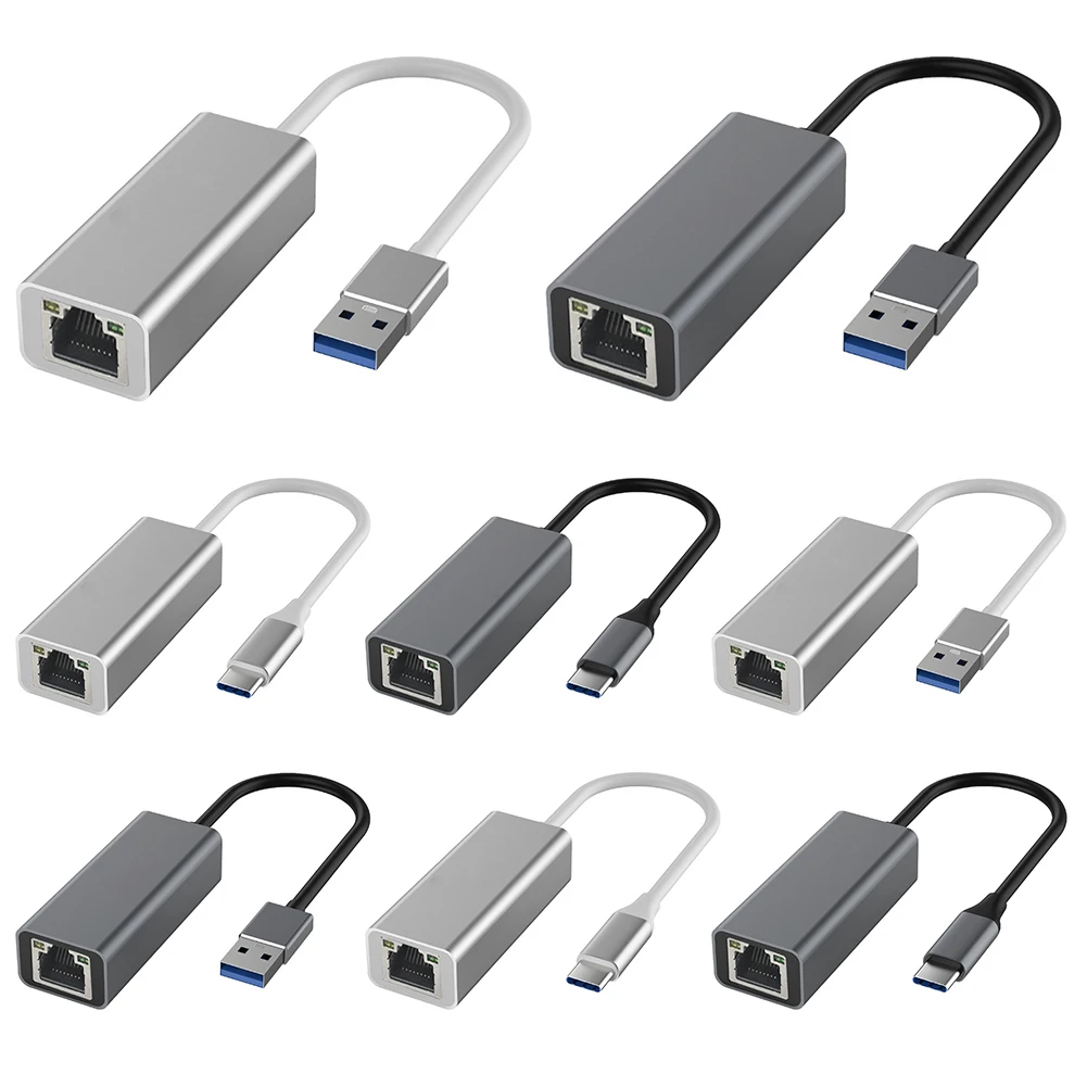 Tipo-C a RJ45 Gigabit Ethernet LAN Adaptador de red 10/100/1000Mbps Tarjeta de red USB Tipo-C Adaptador LAN con cable Aleación de aluminio