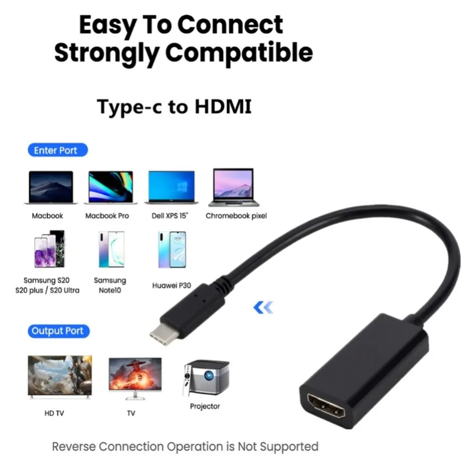 Ampliamente utilizado en: una nueva generación de teléfonos móviles/ordenadores/portátiles/proyectores, etc. con interfaz USB 3,1 tipo C (modo DP), conectado por esta línea de conversión y convertido en (vídeo HDMI). Salida de aplicación multifunción. Resuelve así el esquema de conexión del dispositivo de visualización perfecto del usuario y aplicaciones funcionales como PD y datos. Consigue una pantalla pequeña para convertirla en una pantalla grande, la calidad de la imagen es suave y clara, soporta 4K, disfruta de la vida perfecta.
