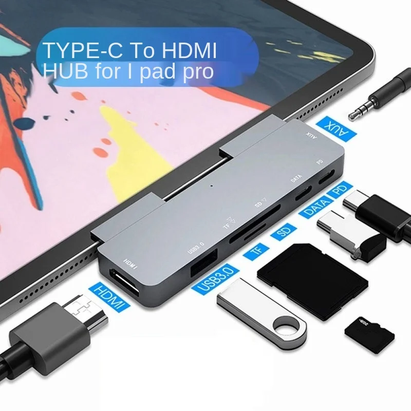 Comprar Adaptador USB tipo C a USB 3,0/2,0 60W PD, de carga rápida transmisión de datos, concentrador 7 en 1 para Ipad Pro, MacBook, teléfono tipo C