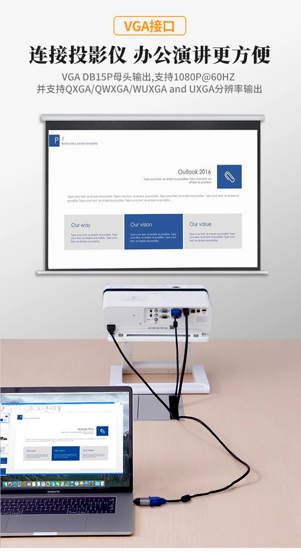 Comprar Adaptador USB tipo C a USB/HD compatible con DP/VGA/Mini DP hembra 4K/8k 60Hz transmisión de vídeo adecuada para computadora portátil