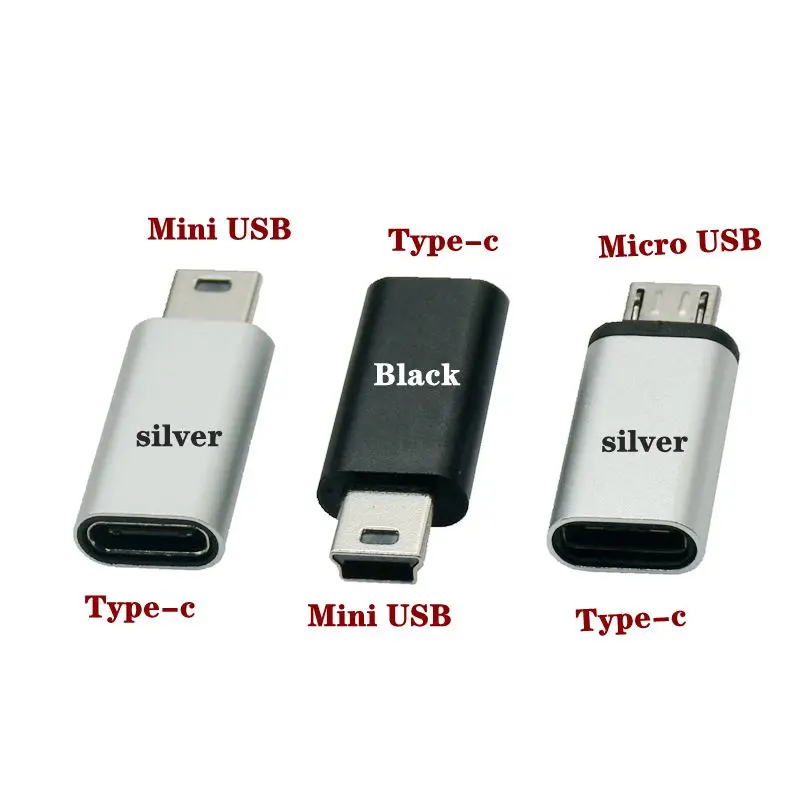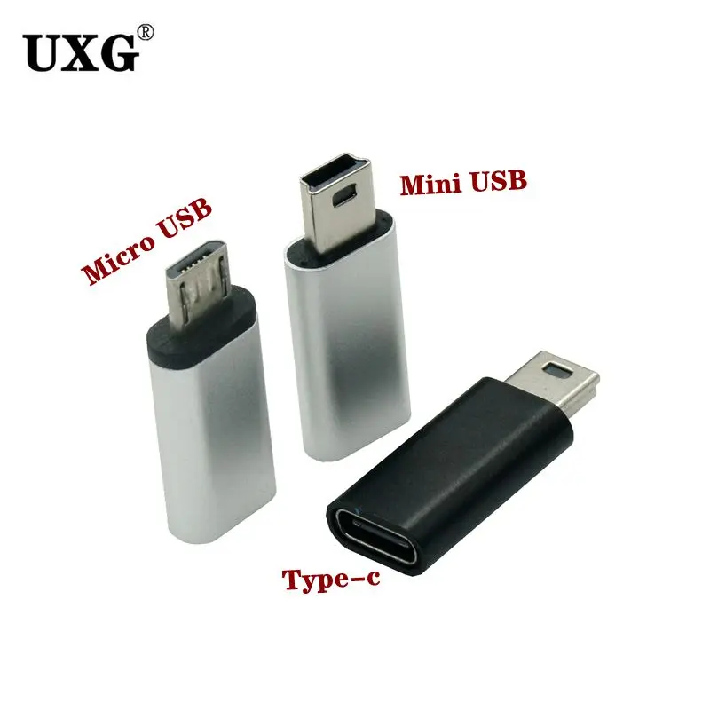 Carga y sincronización de datos para dispositivos Mini USB conectándolos con el cable estándar tipo c.