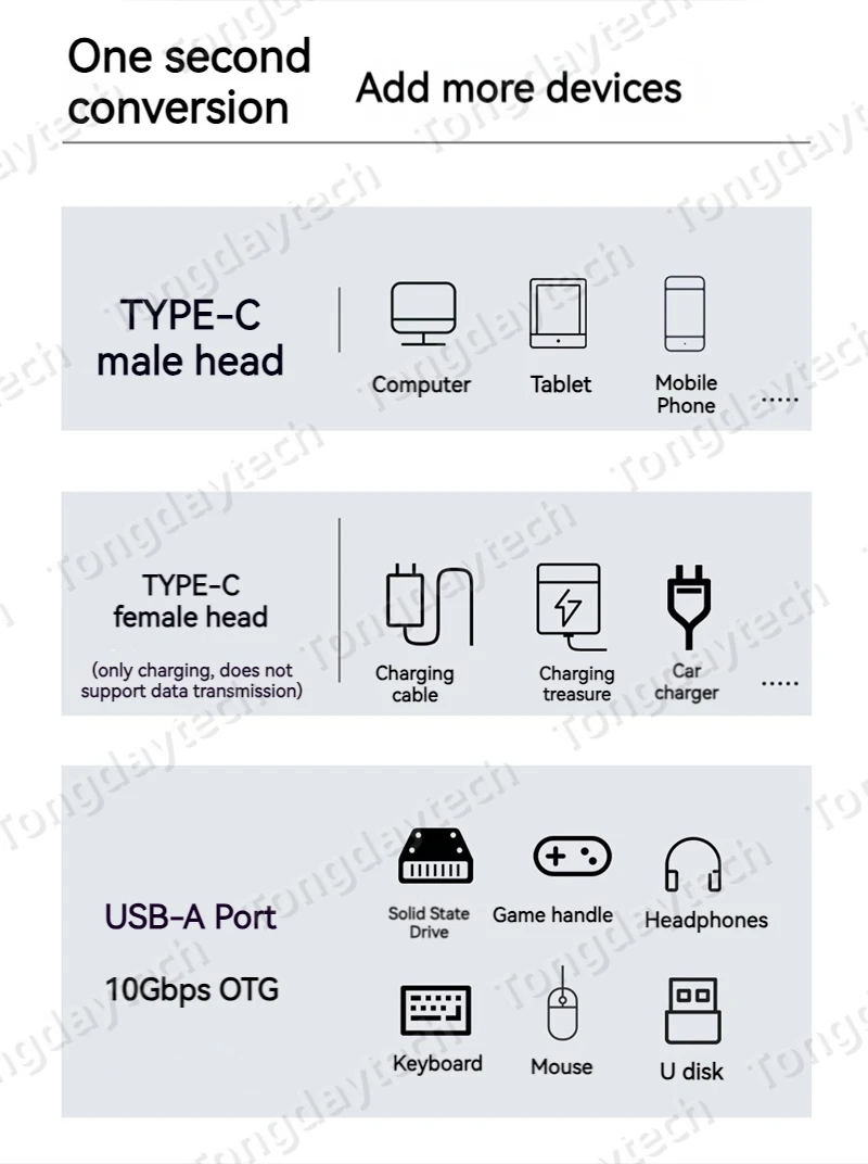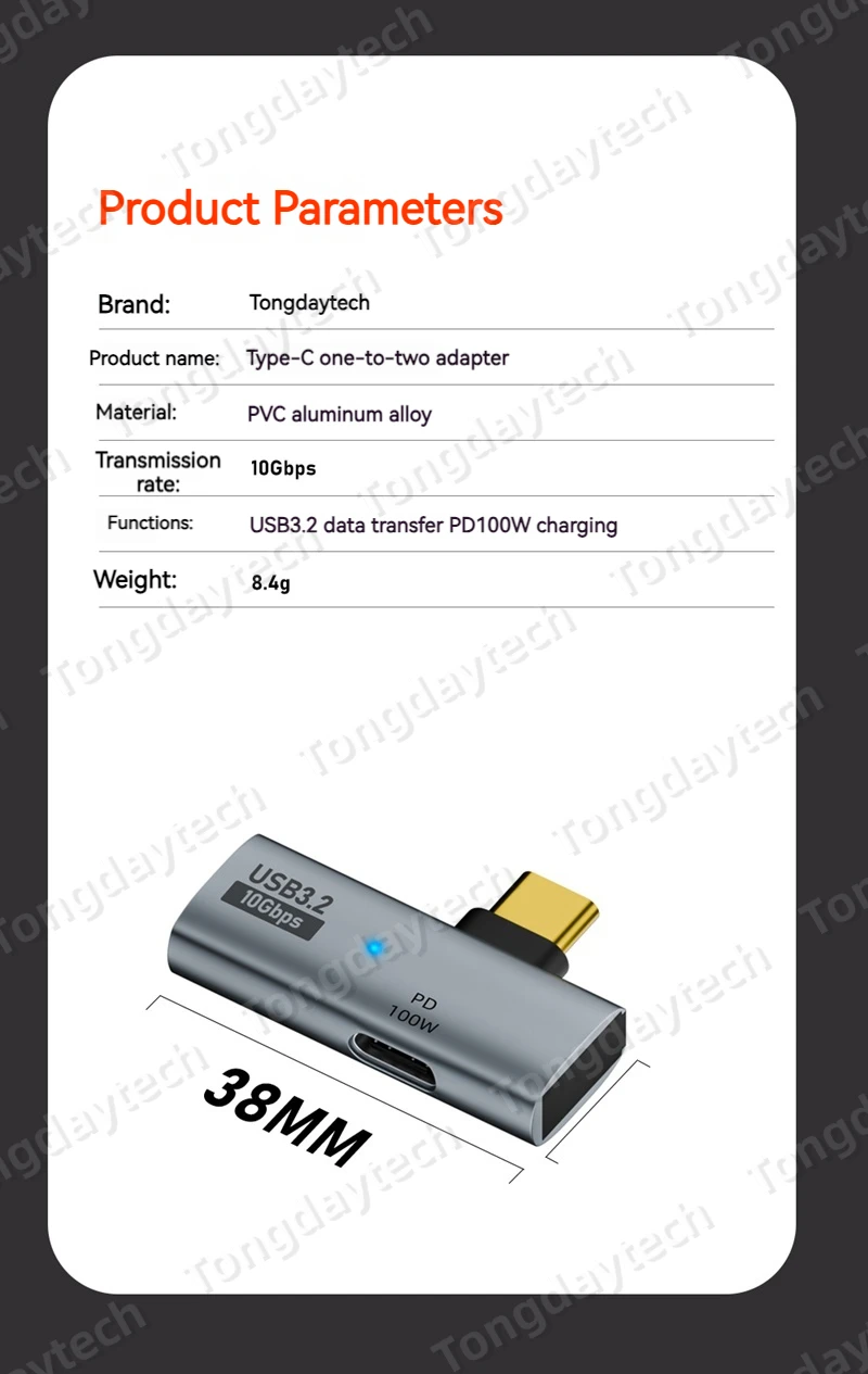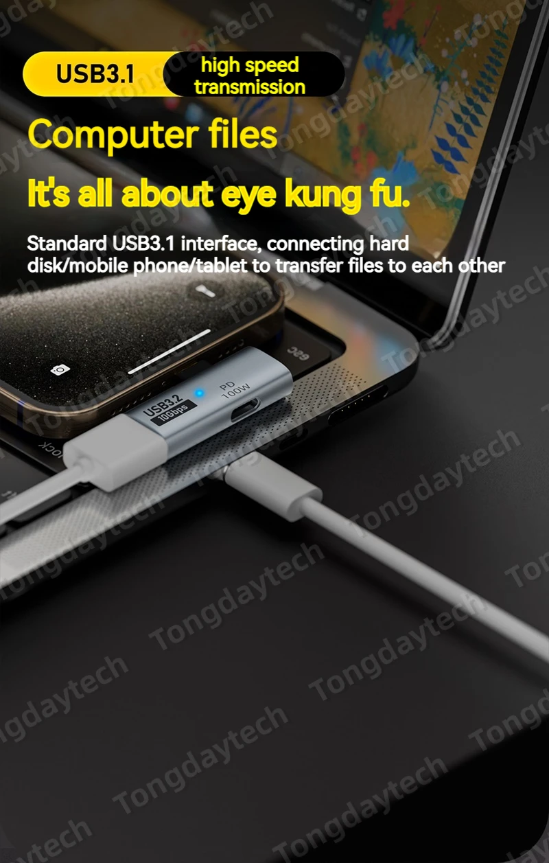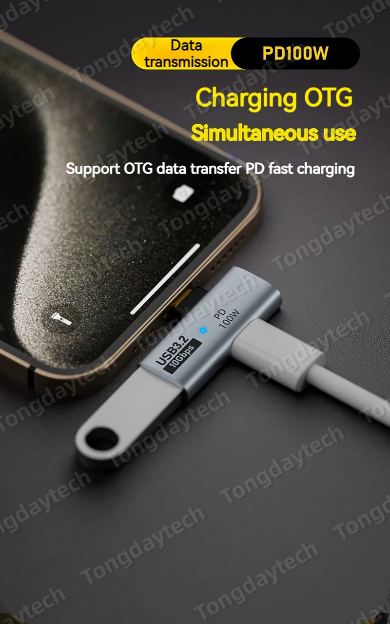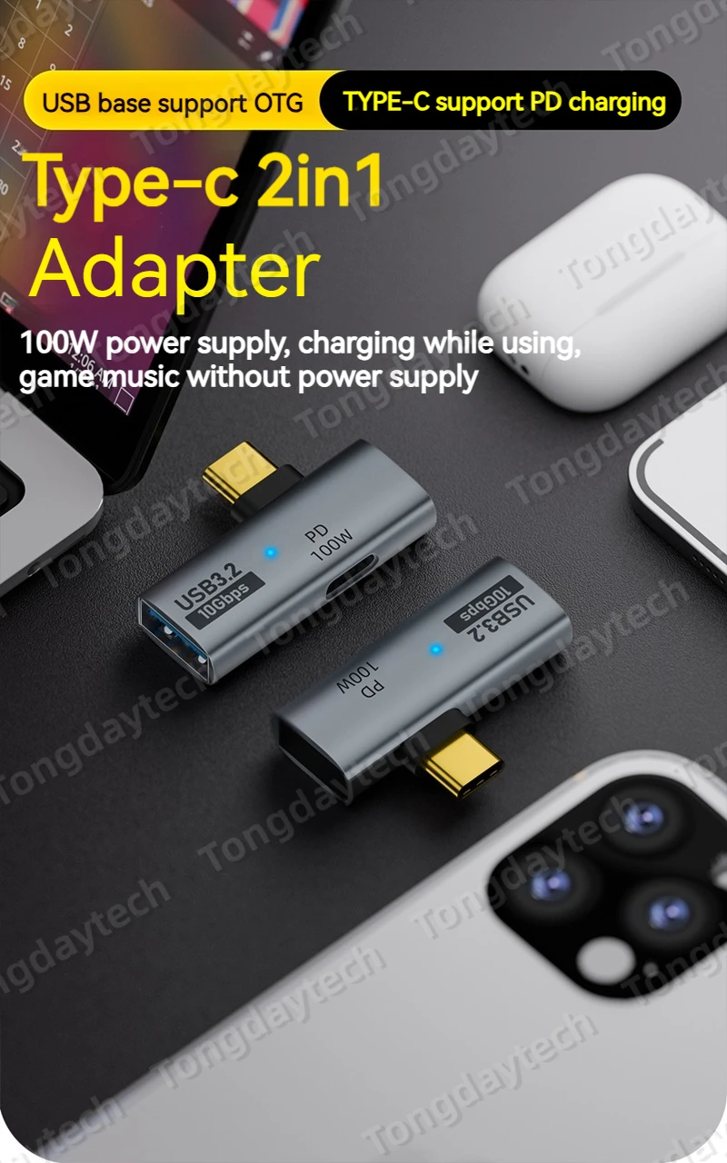 Adaptador USB tipo C 2 en 1 tipo C a USB OTG transferencia de datos 100W convertidor de carga rápida para teléfono tableta Macbook Xiaomi Samsung