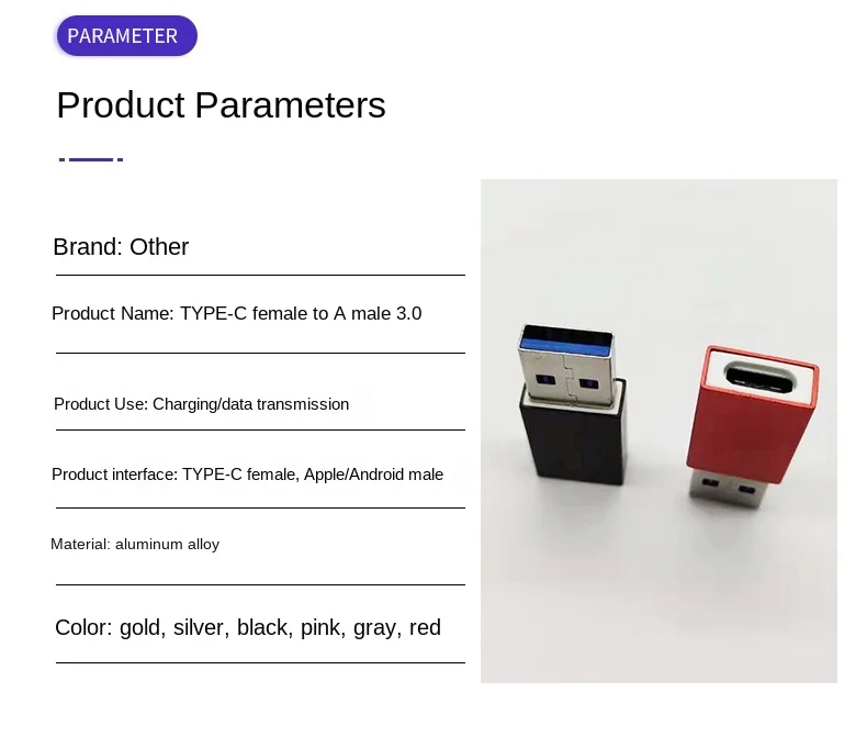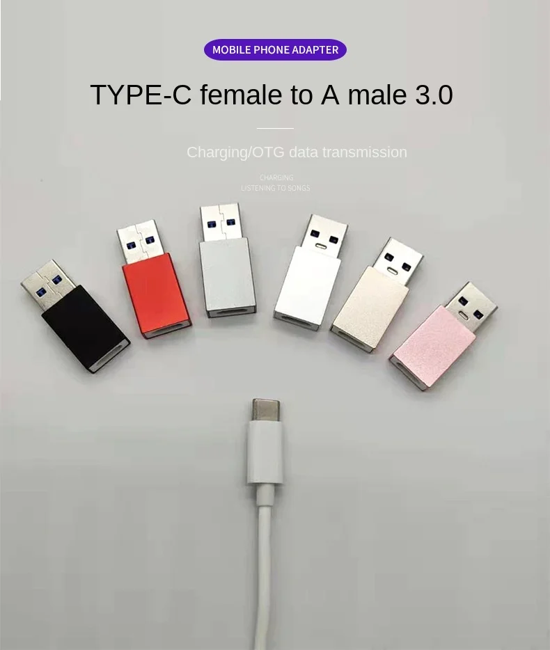 Comprar Adaptador USB de TYPE-C hembra A macho 3,0 para teléfono móvil, transmisión de datos de carga adecuada para interfaz de TYPE-C Huawei y Xiaomi