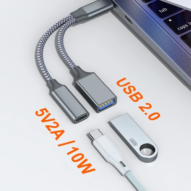 Comprar Adaptador USB USB con carga tipo C, 2 en 1 divisor OTG tipo C con carga rápida 10WPD