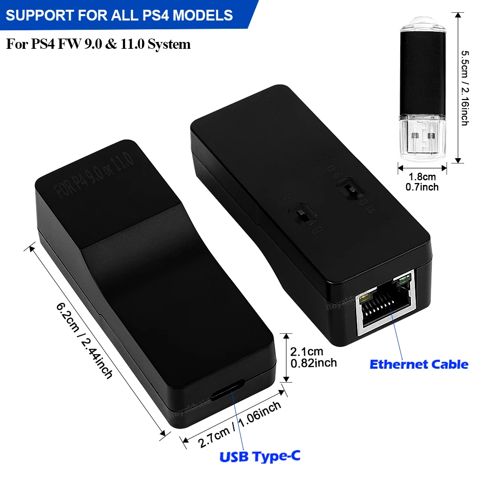 - Conecte su Ethernet y Type-Port a su consola.- El controlador USB sólo es necesario utilizar la primera vez.- El producto viene con un manual de instrucciones y puedes utilizarlo según los pasos del manual.El dispositivo JB 2.0, controlador USB (solo necesario por primera vez), cable tipo C, cable Ethernet, manual.Tenga en cuenta que la versión V2.PRO es compatible con todos los modelos de host de PS4.La versión V2.0 no es compatible con PS4 Slim CUH-22xx,CUH-xx15 CUH-xx17 PS4 Pro CUH-7206.El paquete incluye:1 dispositivo V2.0 Pro.1 x El controlador USB (solo necesita por primera vez)1 cable tipo C1 cable Ethernet1 manual