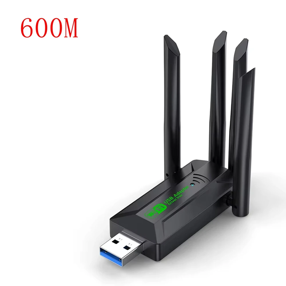 Adaptador USB WiFi de 1200/600 Mbps Doble banda 2.4G + 5Ghz Dongle Wi-Fi 4 Antena 802.11AC USB3.0 Receptor de tarjeta inalámbrica de alta velocidad PC/portátil