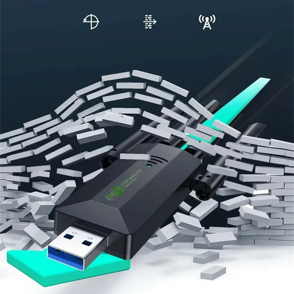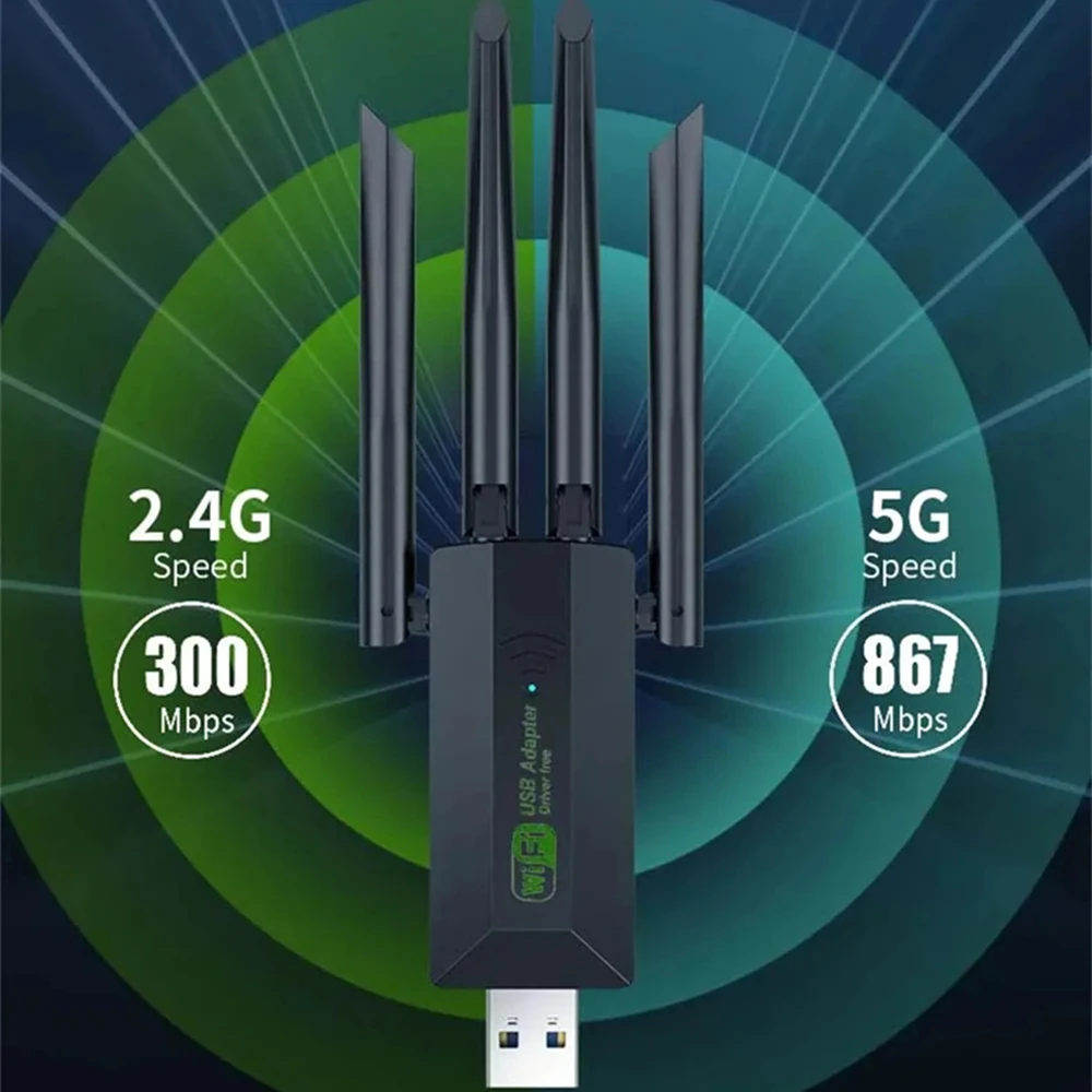 Características del producto:1.Conmutación de doble frecuencia, compatible con dos bandas de frecuencia de trabajo de 2,4 GHz y 5 GHZ2.Combinación optimizada de antena dual, alta ganancia de señal, diseño de rotación libre de 180 grados3.La velocidad de transmisión USB3.0 llega a 5 Gbps, lo que mejora efectivamente la estabilidad de transmisión de la tarjeta de red y la transmisión de alta velocidad no se congela.4.Diseño de orificio de disipación de calor, enfriamiento eficaz y rápido para mantener el entorno de trabajo normal y prolongar la vida útil5. Fuerte señal de doble antena penetrante en la pared de alta velocidad fuerte y alta transmisión