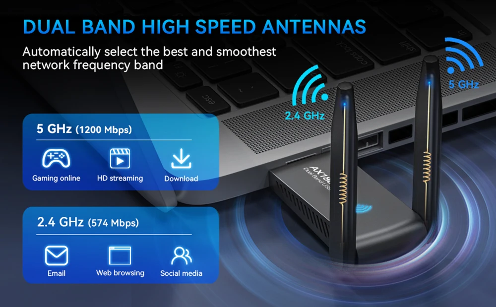 8. Estándar inalámbrico: IEEE802.11a/B/g/n/AC/AX) tasa de transmisión de alta velocidad de 1800Mbps