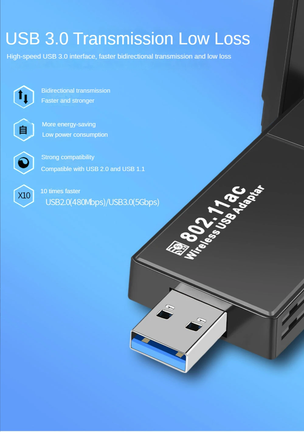Características de 1300Mbps: (unidad gratuita Plug and Play/no WIFI6)