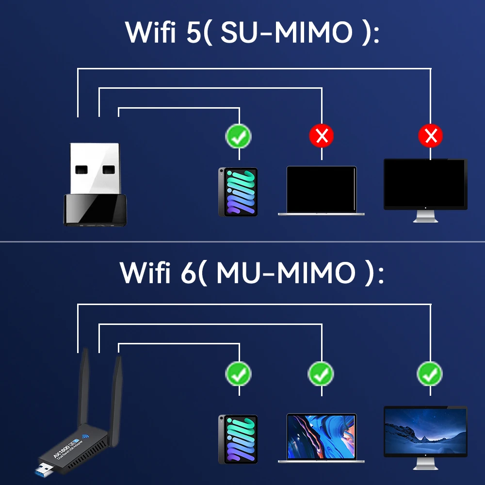 3,1800 Mbps(Wifi 6, con unidad de disco U)Adaptador USB WiFi inalámbrico (2,4 GHz :600Mbps; 5,8 GHz:1201Mbps)