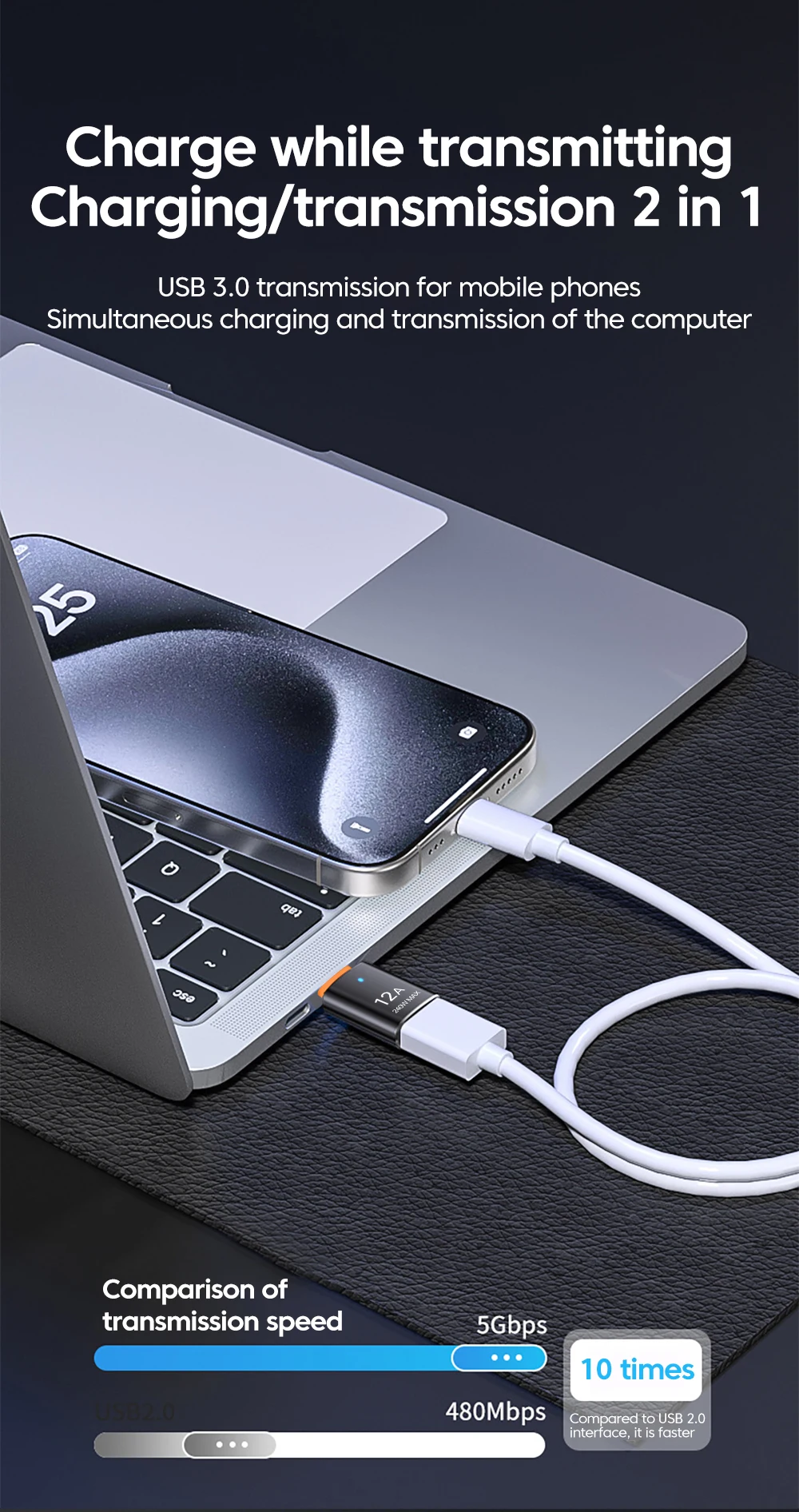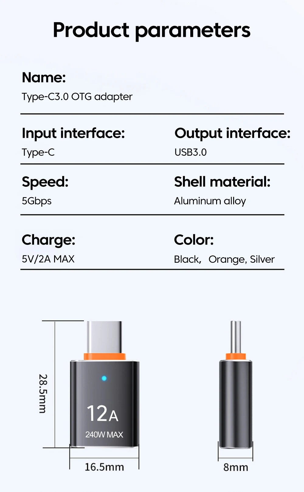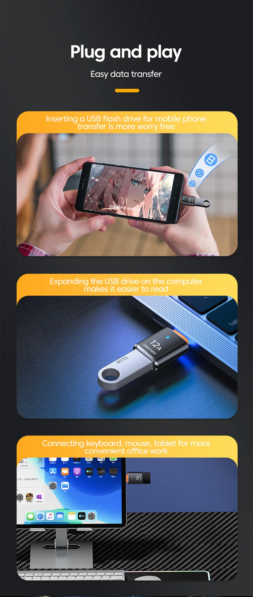 Adaptador USB3.0 OTG tipo C macho a conector hembra USB convertidor de transferencia de datos de carga rápida para iphone 15 Samsung Huawei Xiaomi