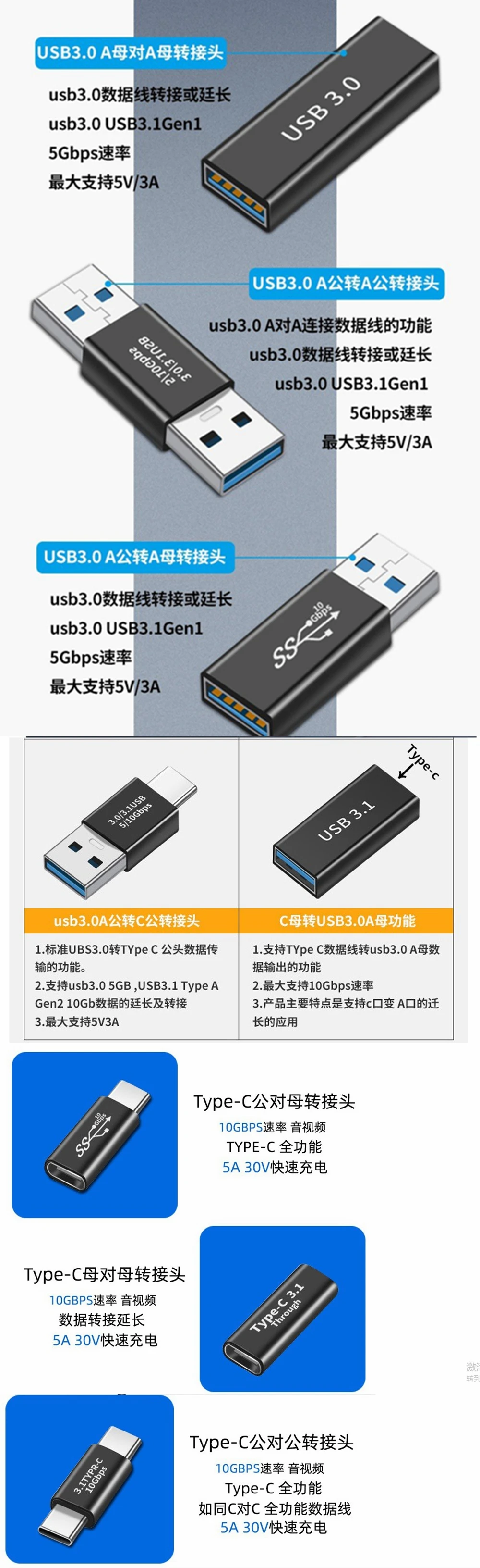 Comprar Adaptador USB3.0 tipo C OTG USB C hembra a USB 3,1 macho convertidor tipo c Cable adaptador para ordenador portátil Smartphone USB-C cargador de datos
