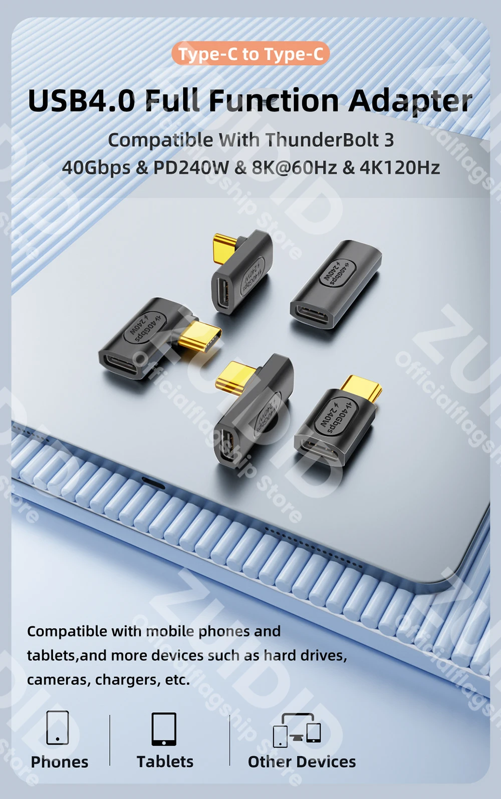 Comprar Adaptador USB4.0 40Gbps PD240W USB C a tipo C Thunderbolt3 8K @ 60Hz 48V @ 5A convertidor de carga rápida adaptador de datos OTG para Macbook