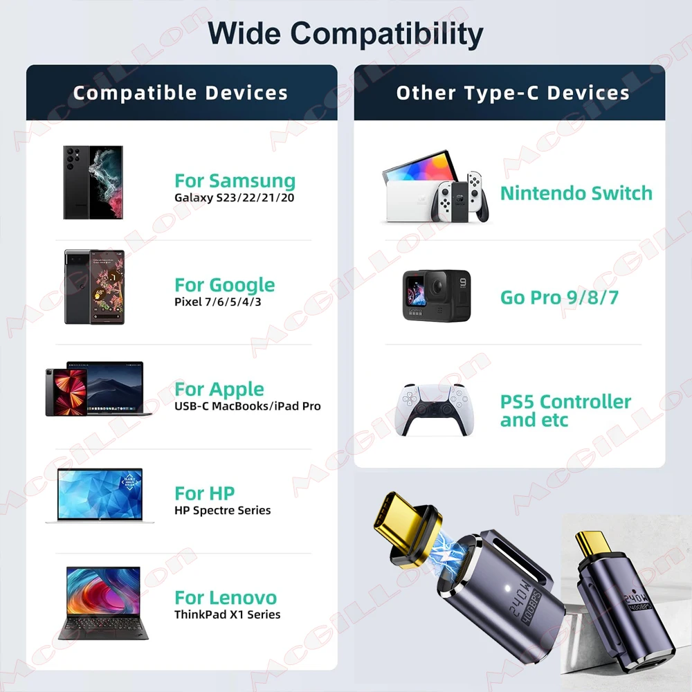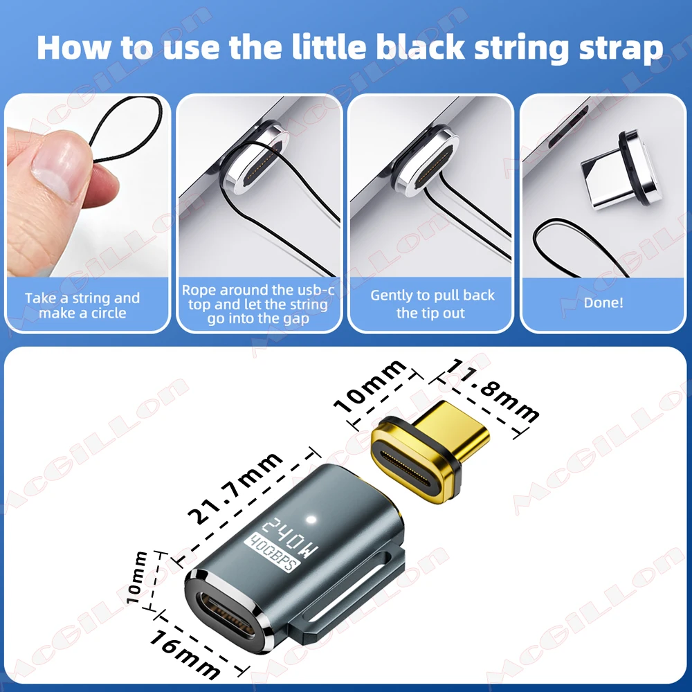Adaptador USB4.0 40Gbps PD240W USB C a tipo C Thunderbolt4 8K @ 60Hz 48V @ 5A convertidor de carga rápida adaptador de datos OTG para Macbook