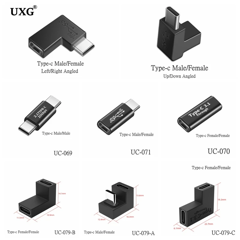 USB 3.1 Tipo C 10 Gbps hembra a hembra Adaptador de ángulo recto de 90 grados hembra a 2 hembra Conector convertidor OTG en ángulo en forma de U