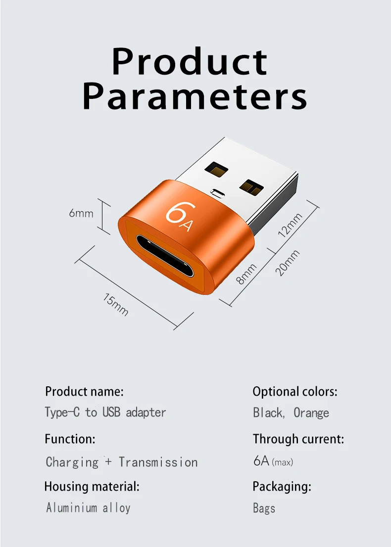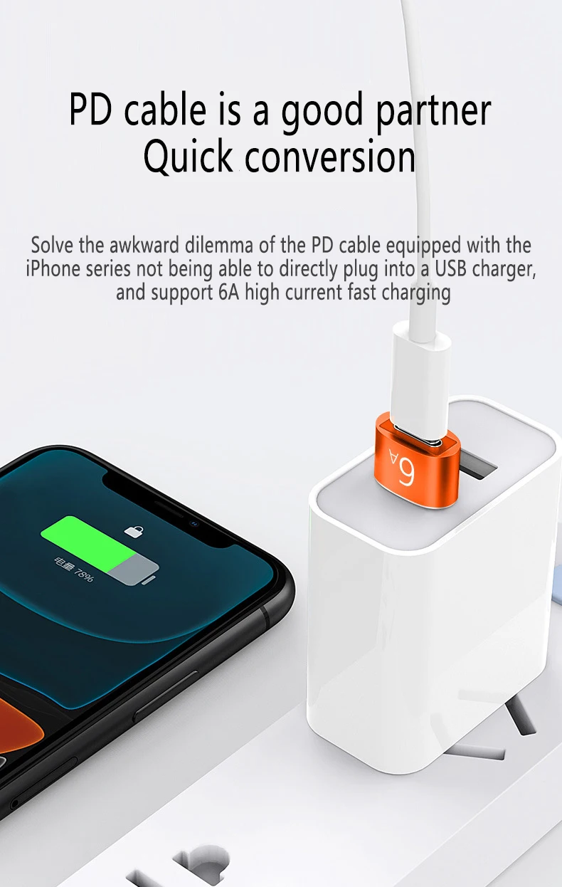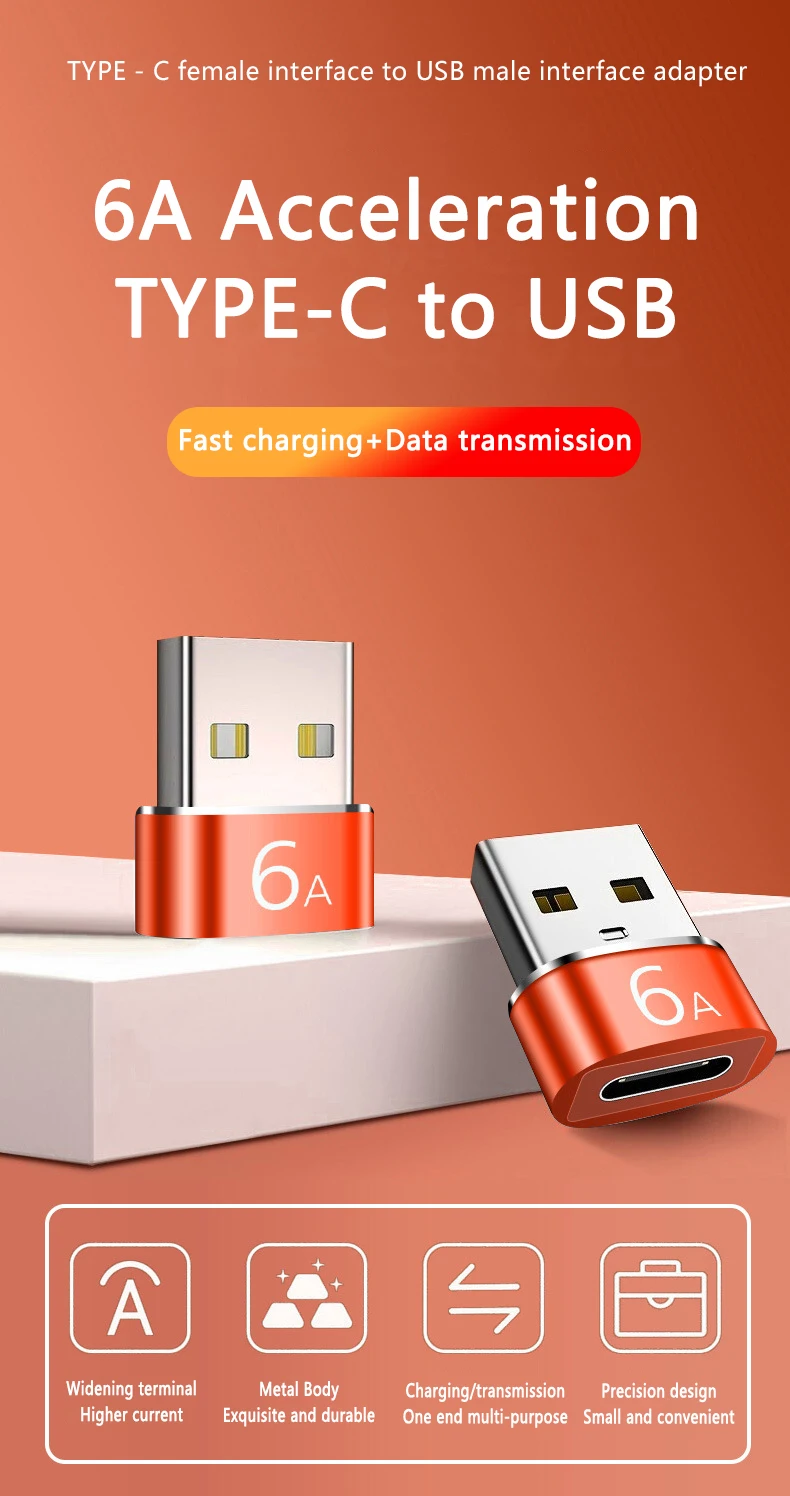 Adaptador UTHAI Z23 tipo c a USB 3,0 adecuado para iPhone 11/12/13 adaptador de carga compatible con carga rápida de corriente 6A