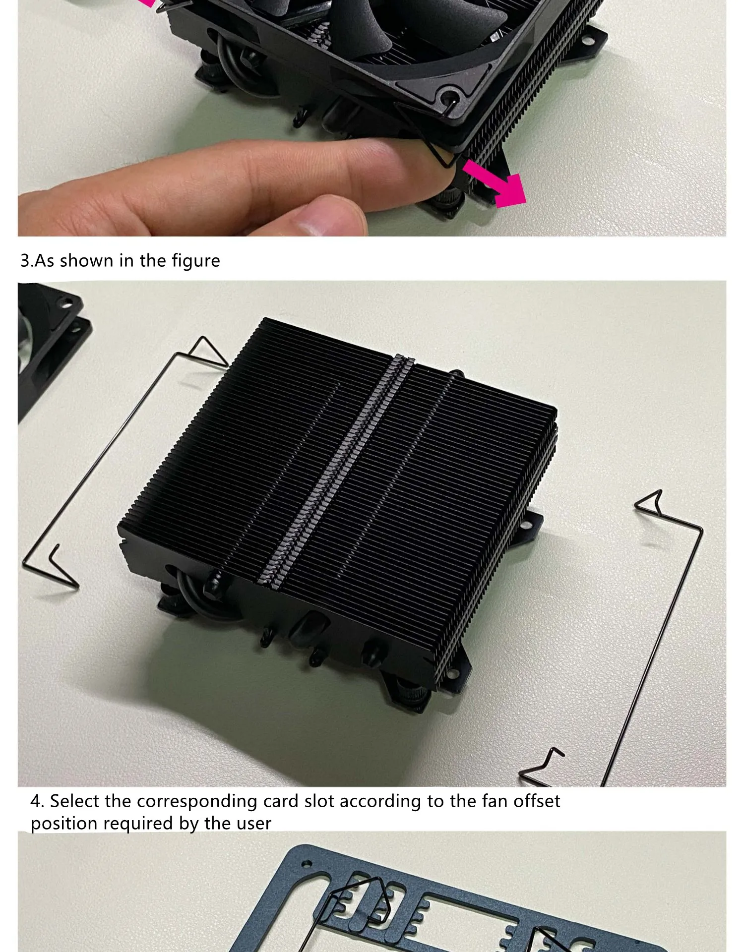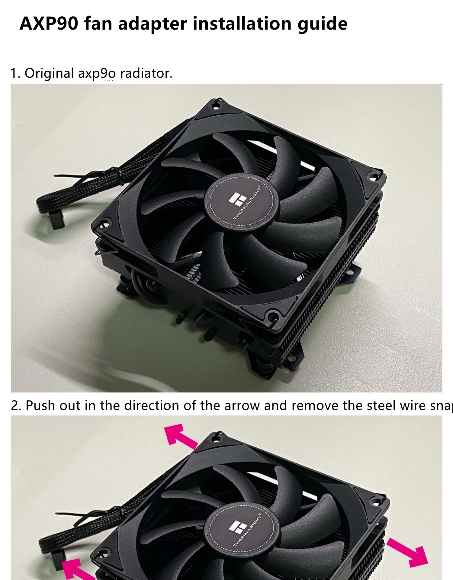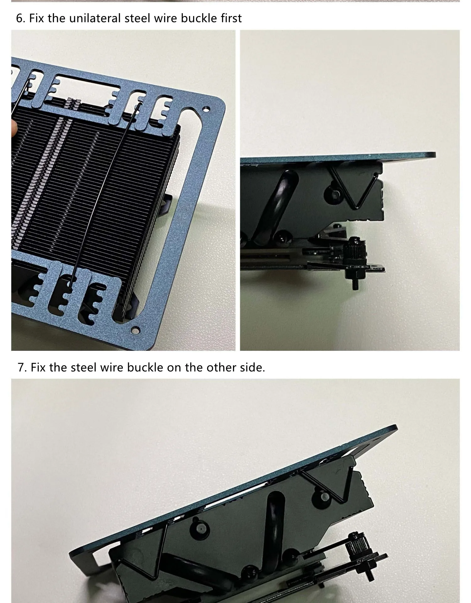 3: El soporte del ventilador se fija con el sujetador de alambre de acero original de axp90 para resolver la vergüenza de que el radiador axp90 no tenga orificio de tornillo de instalación.