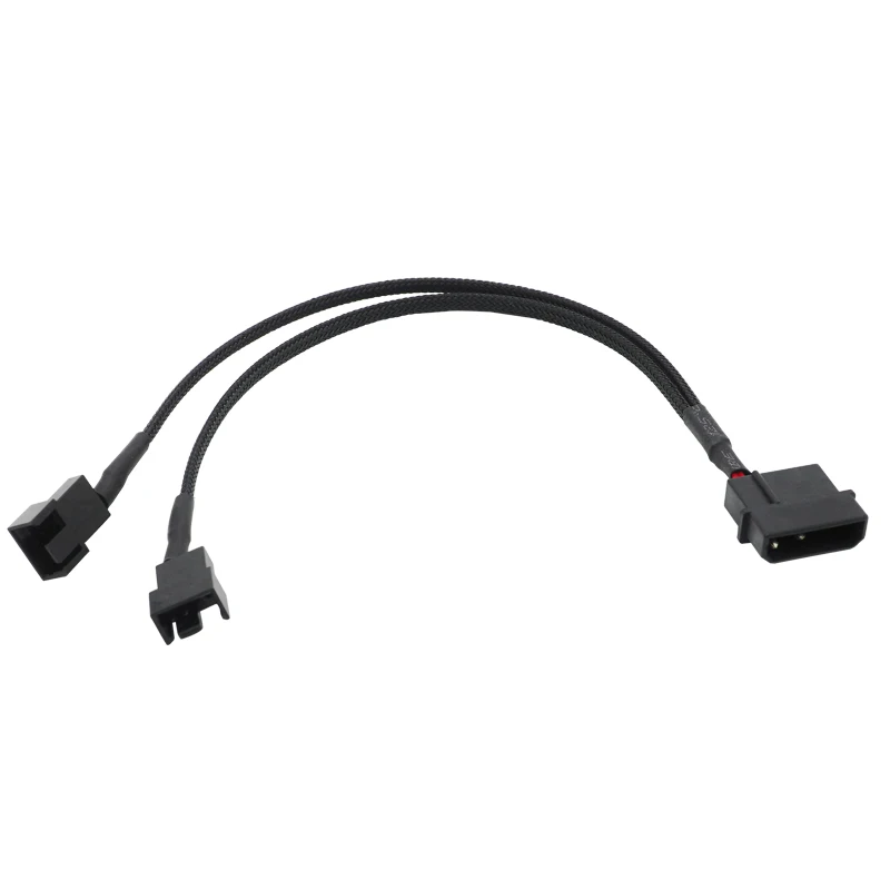 Black Sleeved 4pin IDE Molex a 4 puertos 3Pin/4Pin Cooler Cooling Fan Splitter Cable de alimentación