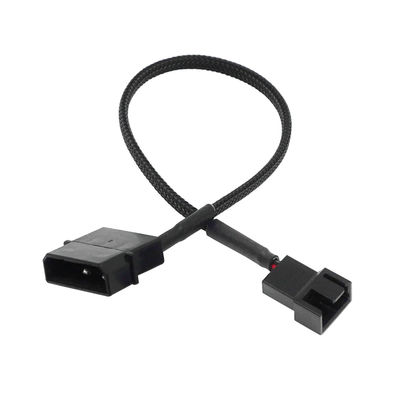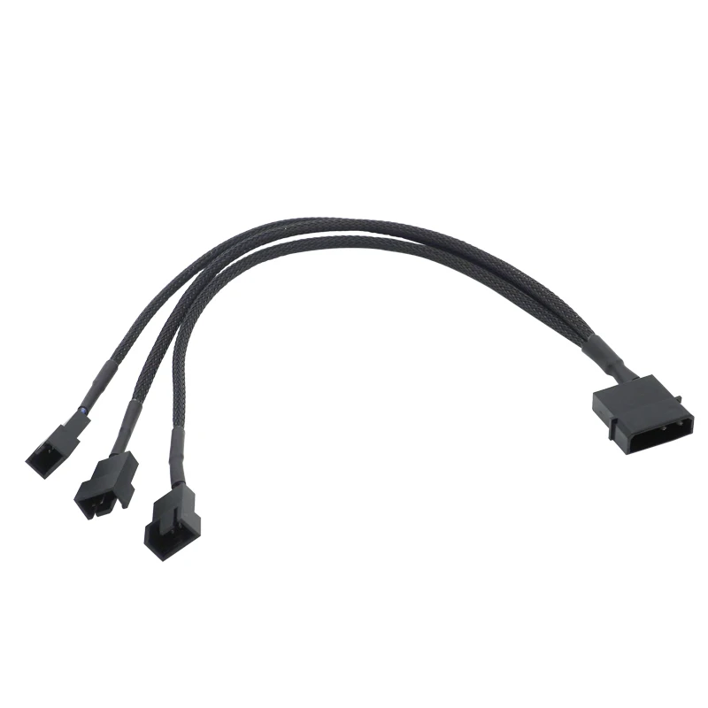 Nombre: Molex IDE de 4 pines con funda negra a cable de alimentación divisor de ventilador de refrigeración de 3 pines/4 pines de 4 puertos