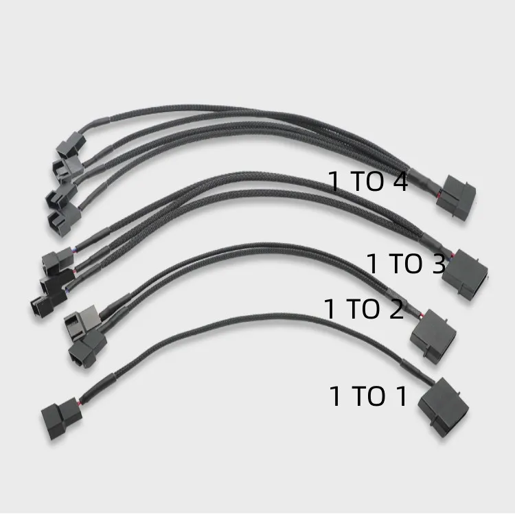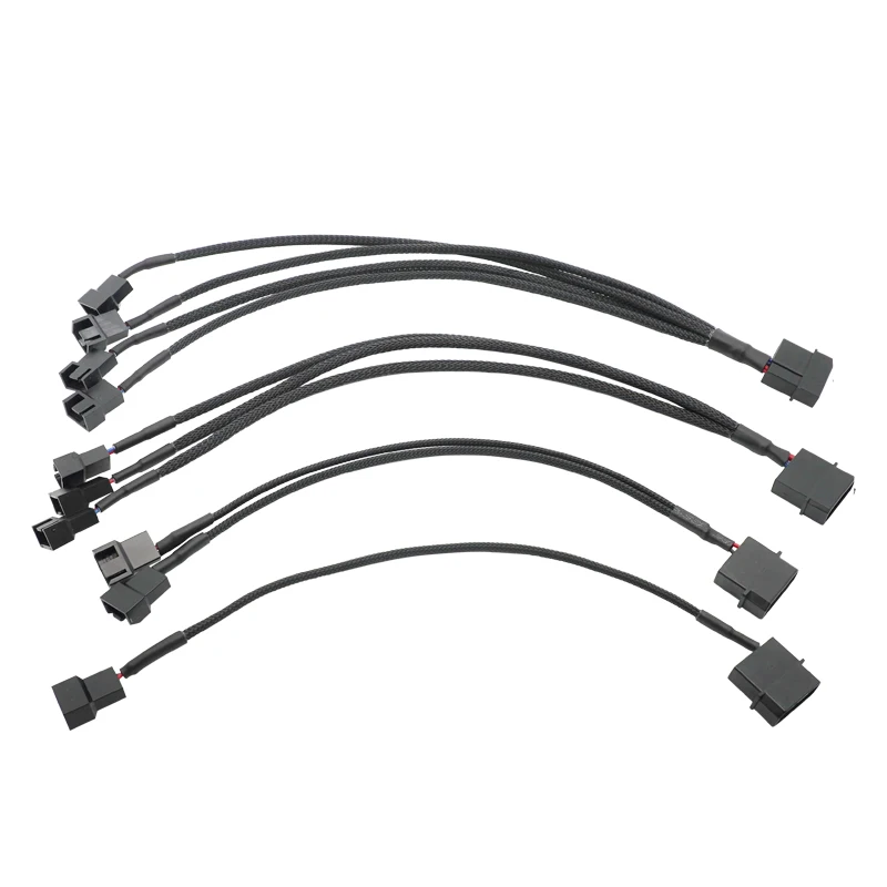 Nombre: Molex IDE de 4 pines con funda negra a cable de alimentación divisor de ventilador de refrigeración de 3 pines/4 pines de 4 puertos